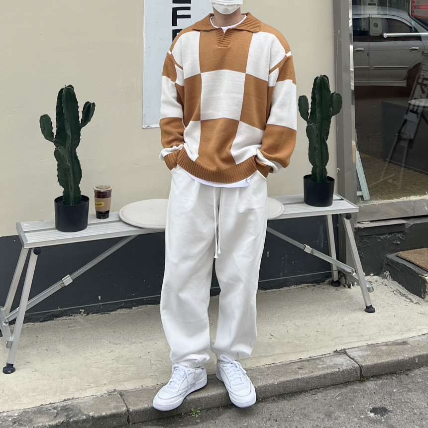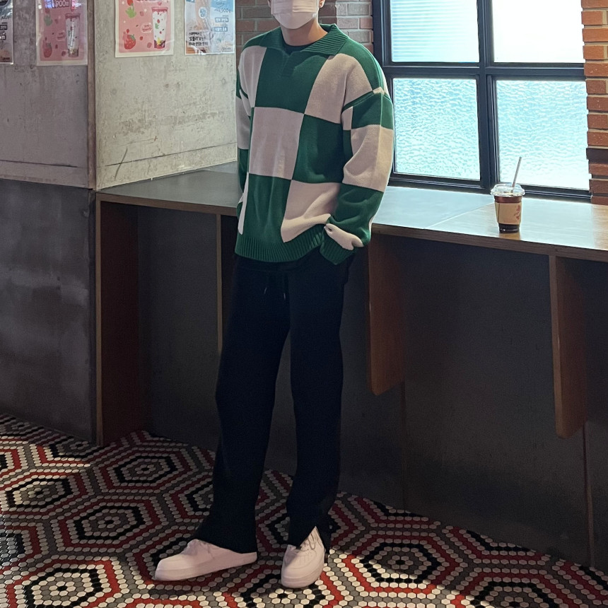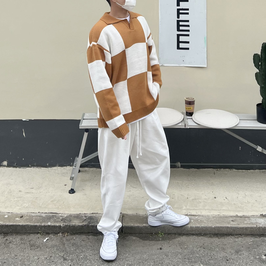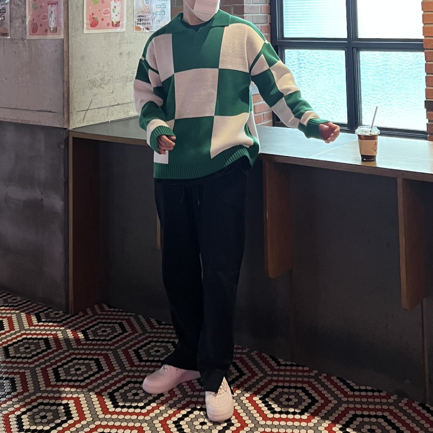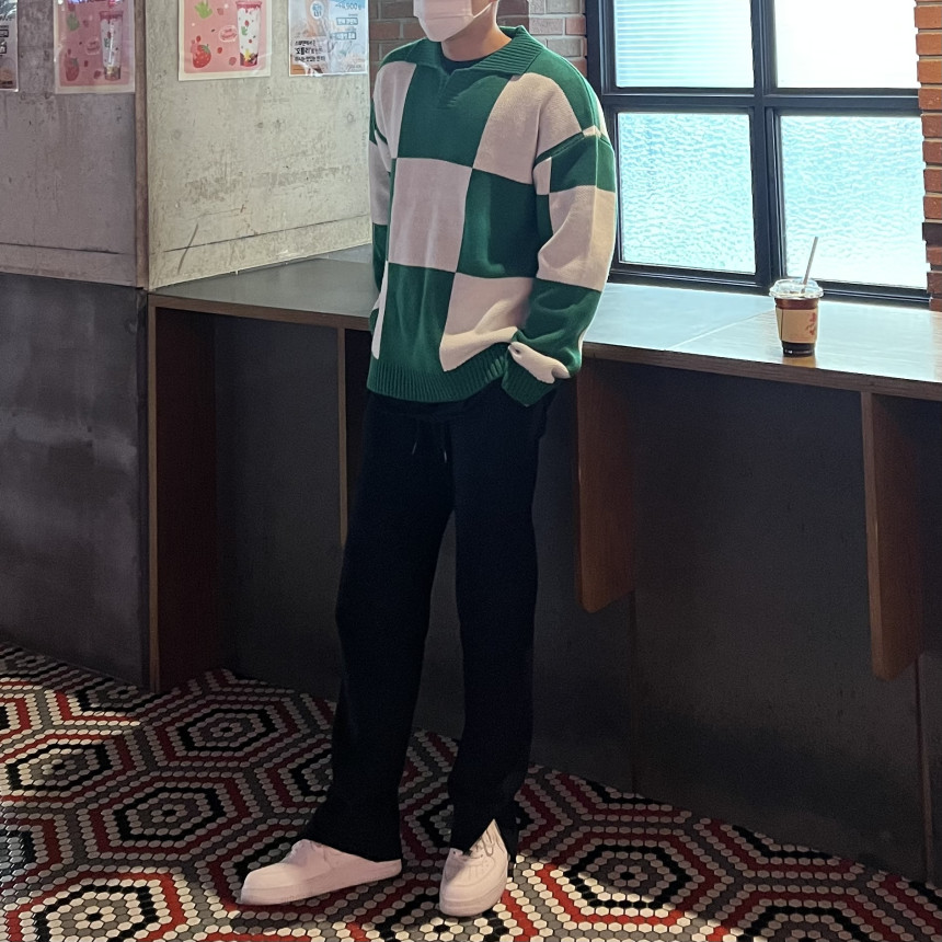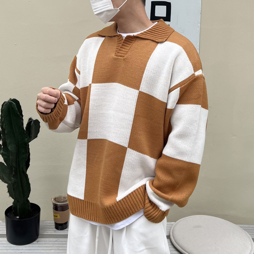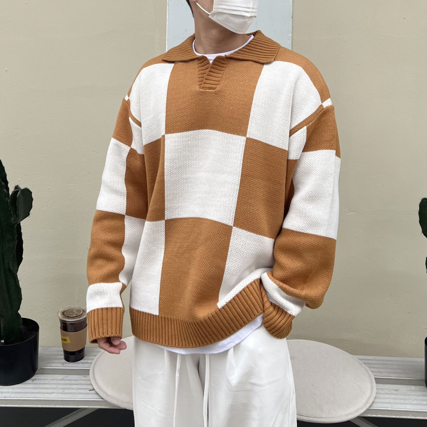 Check collar over knit (3color)