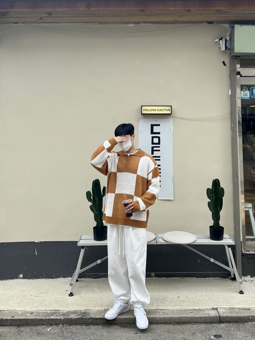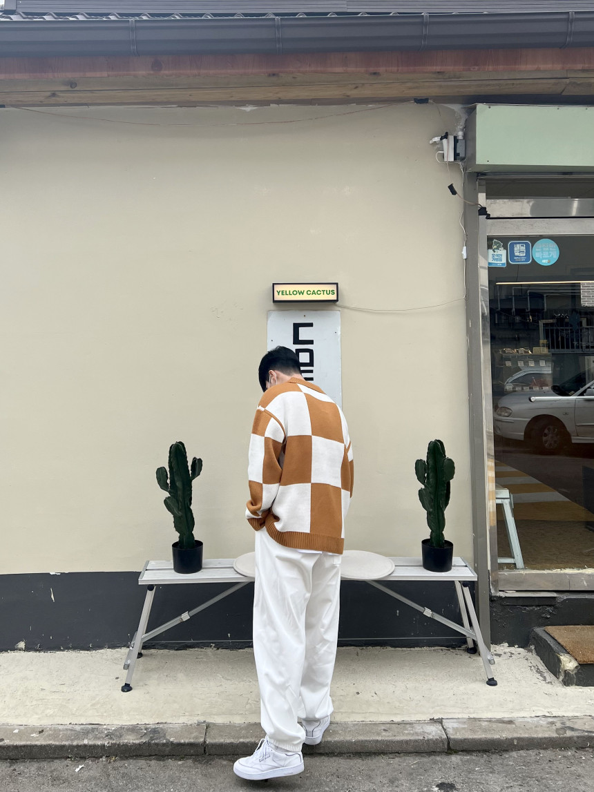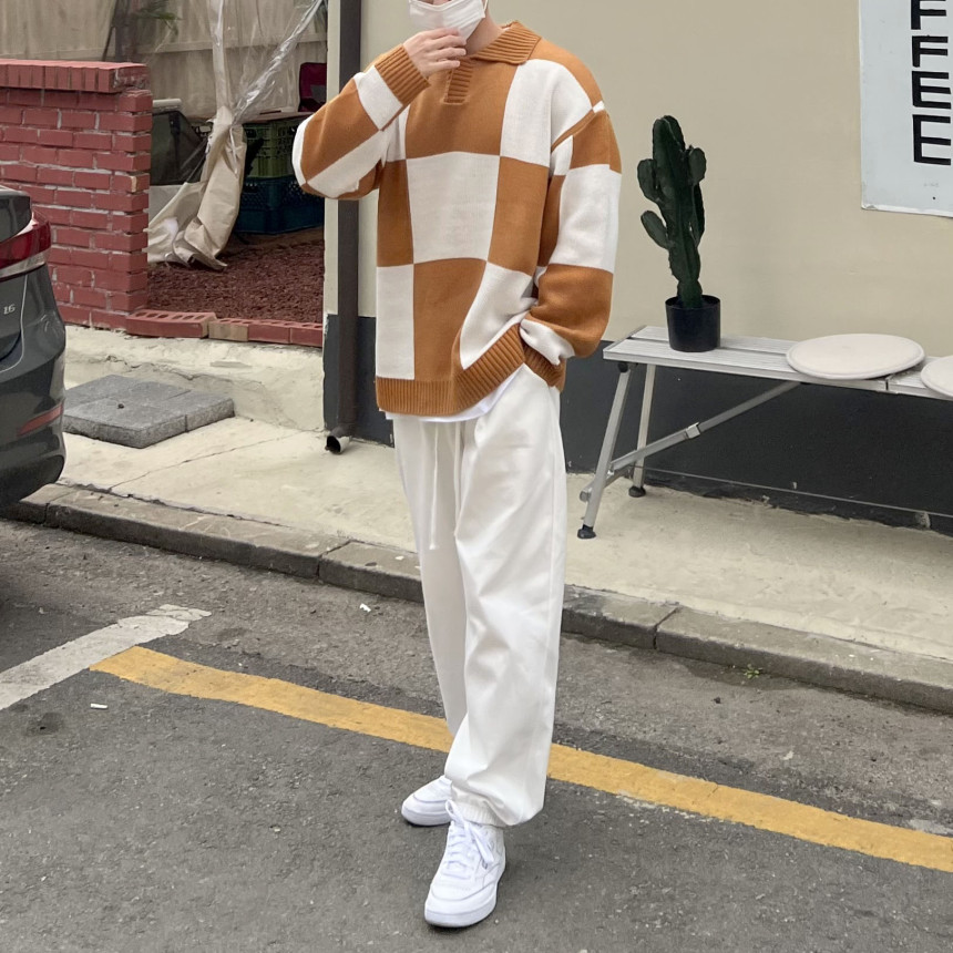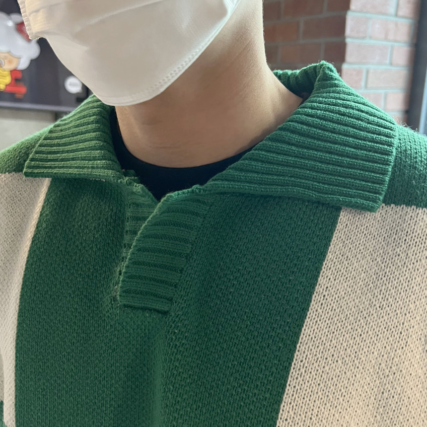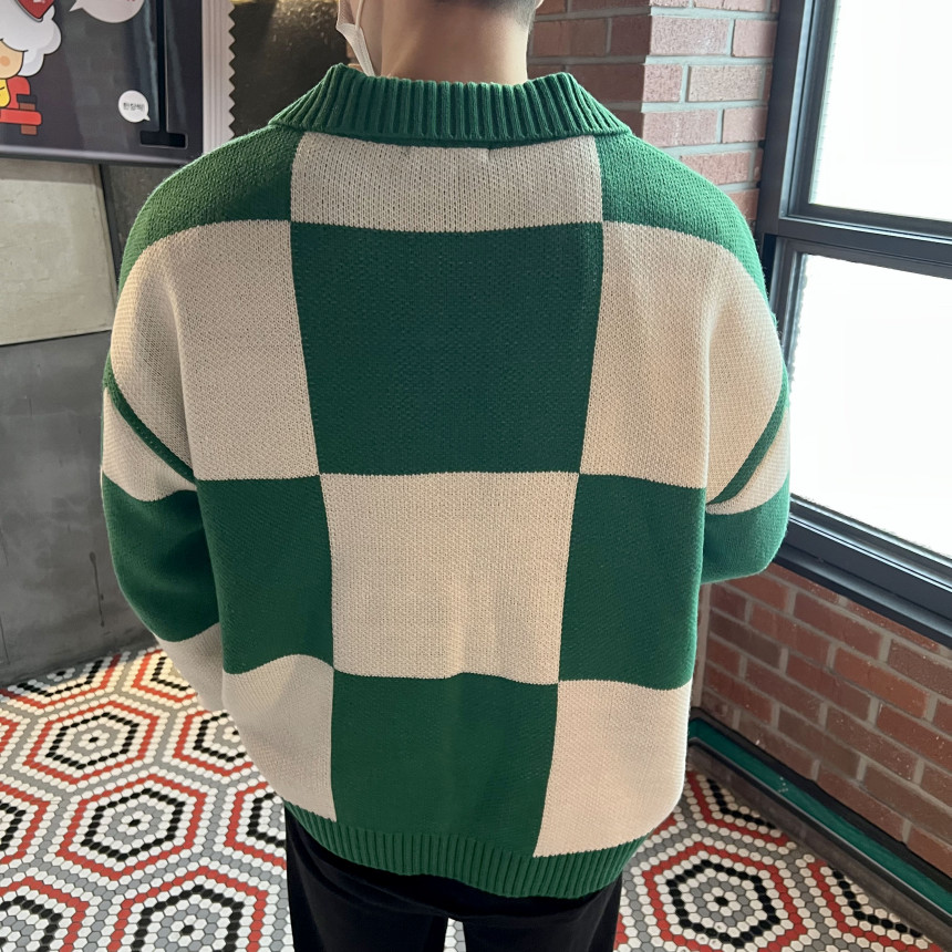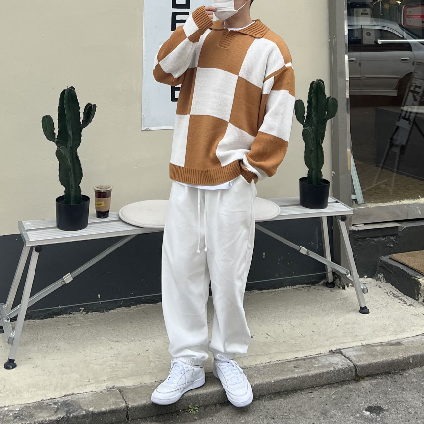 Check collar over knit (3color)