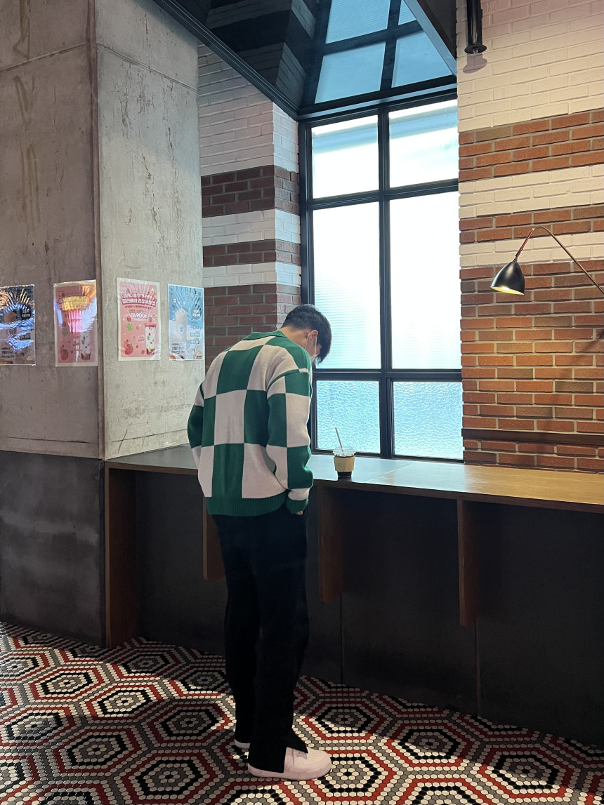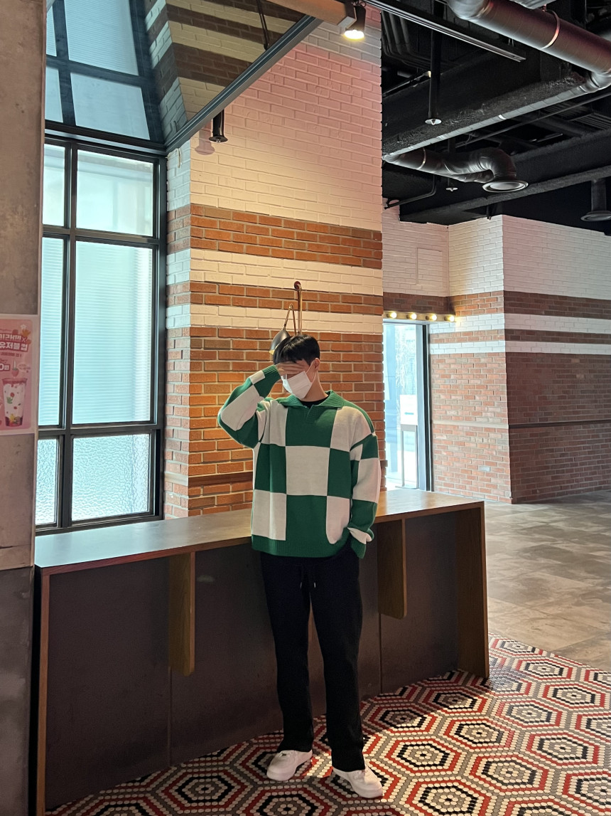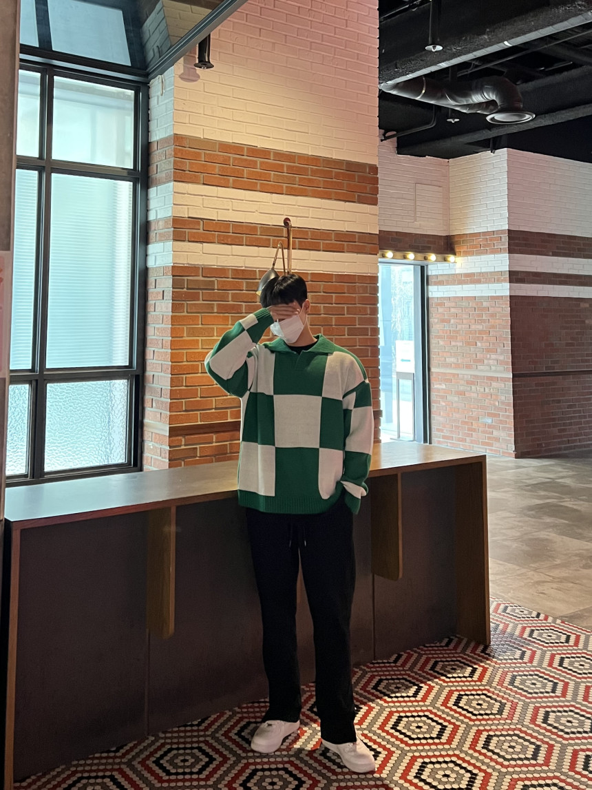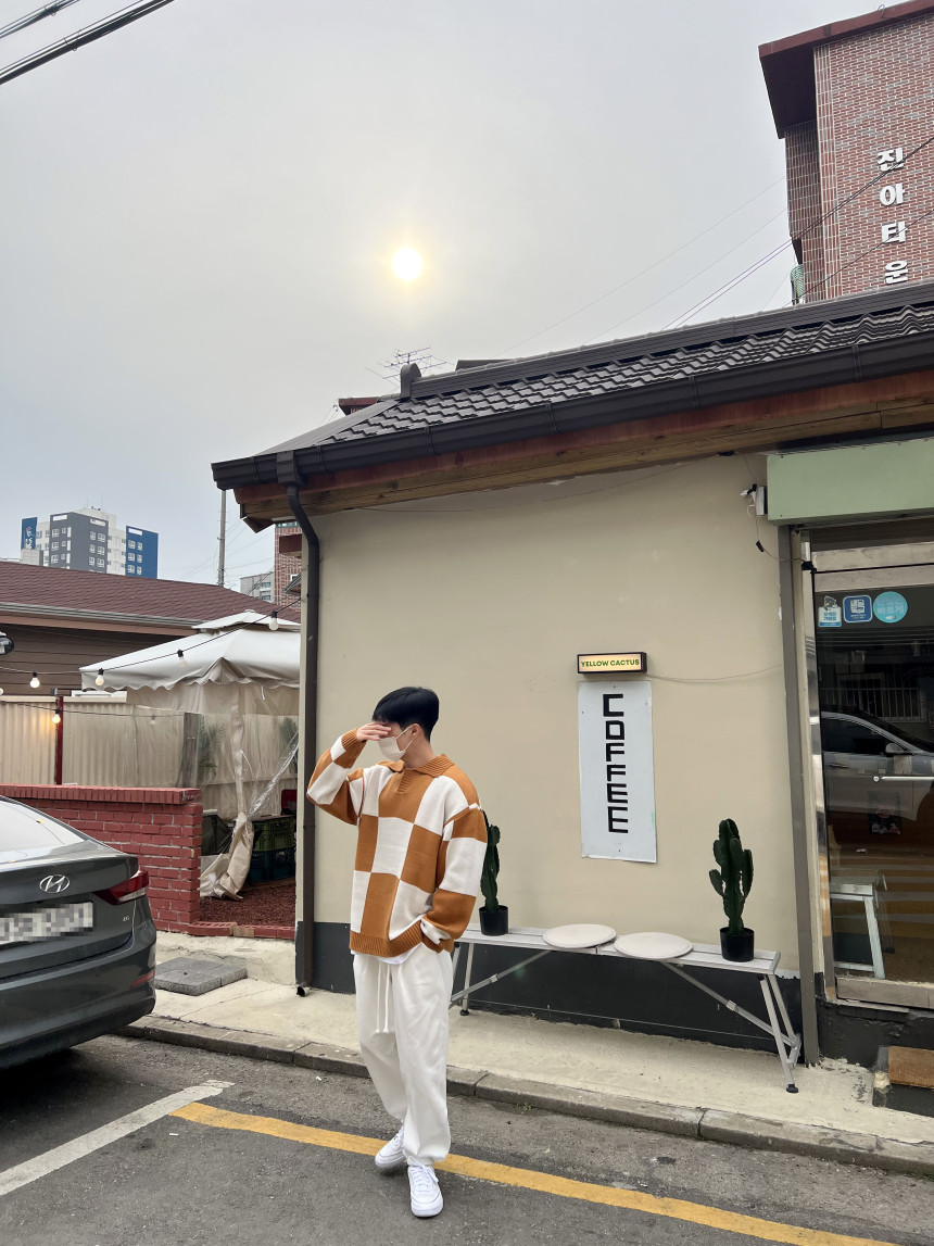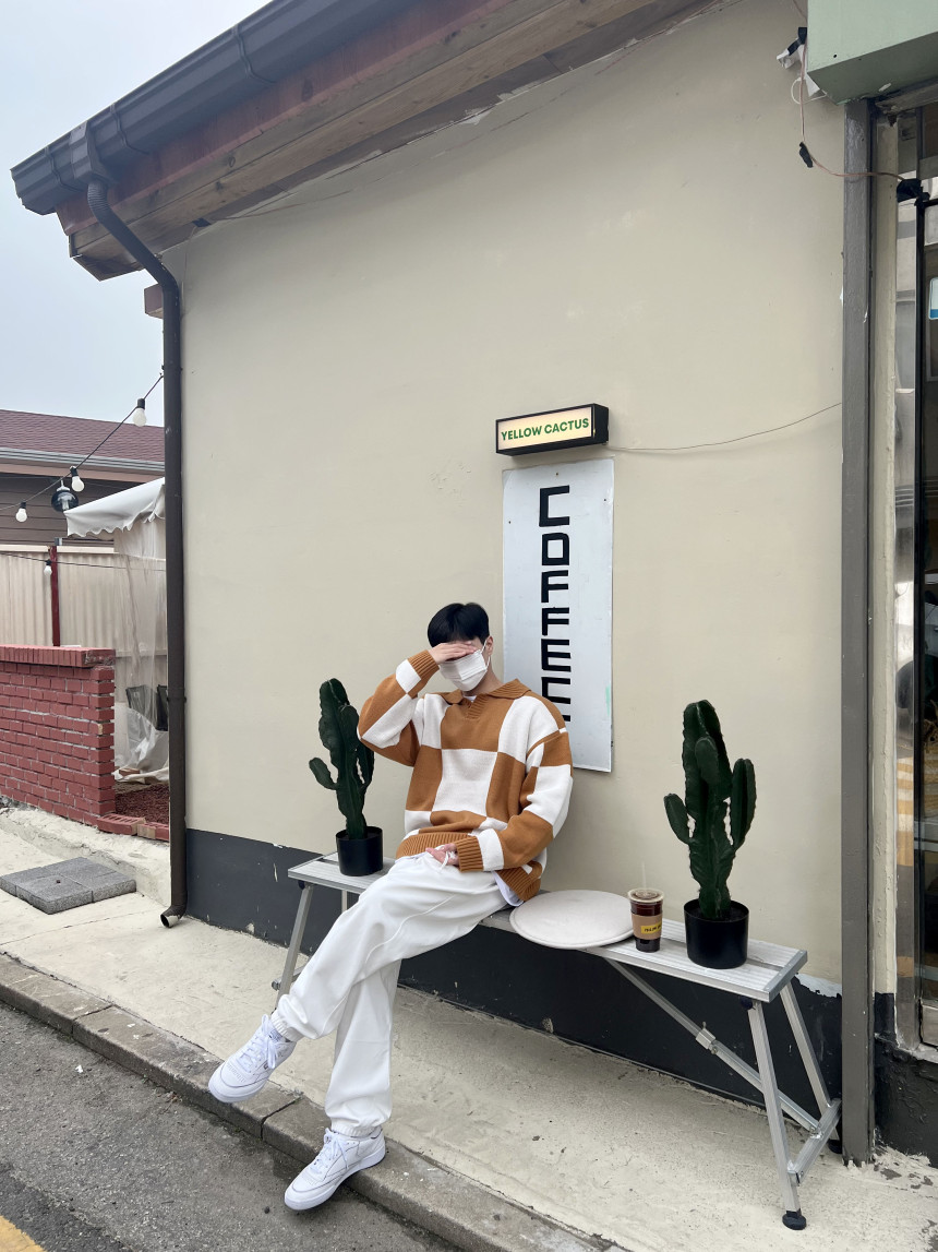 Check collar over knit (3color)