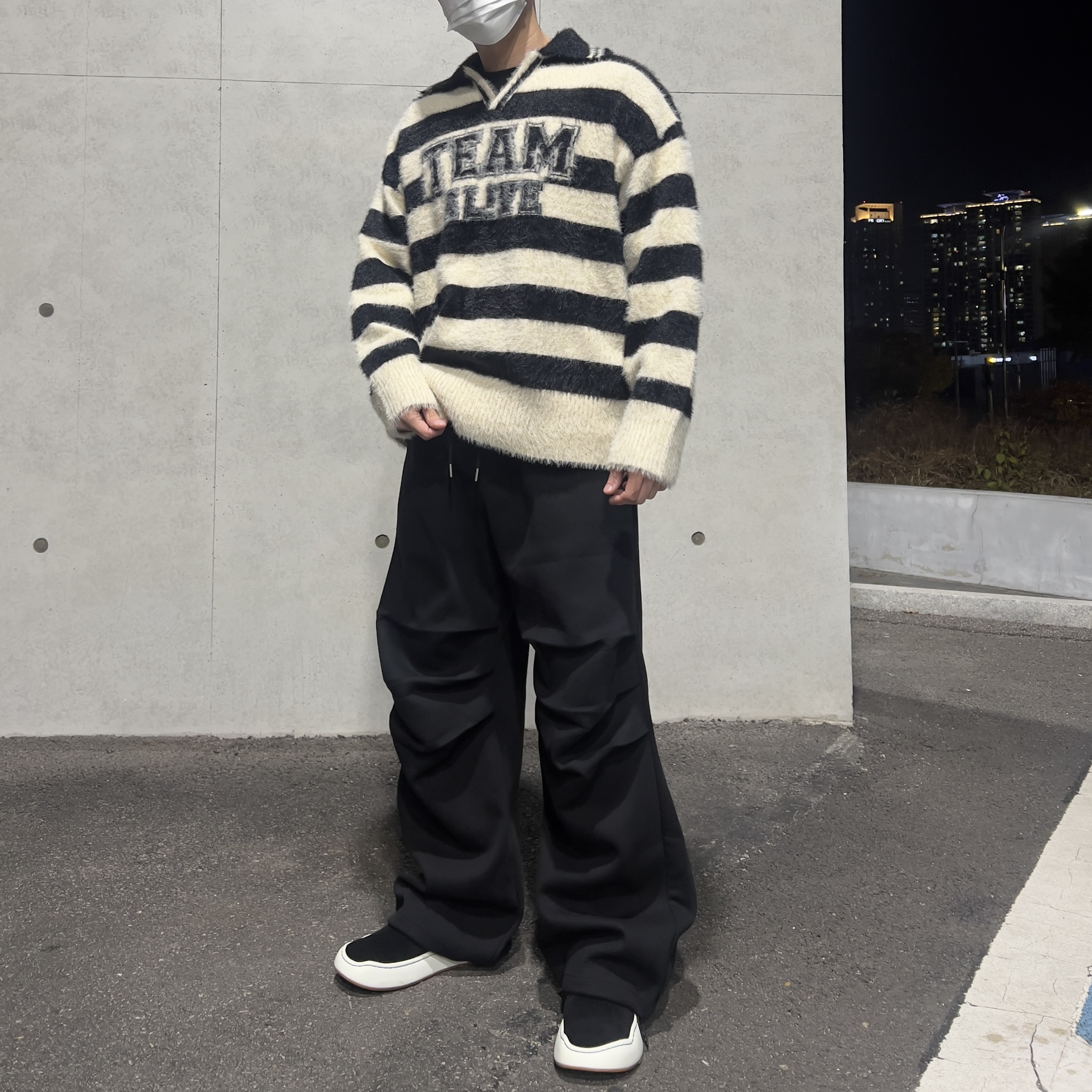 top - rugby collar knit (black)