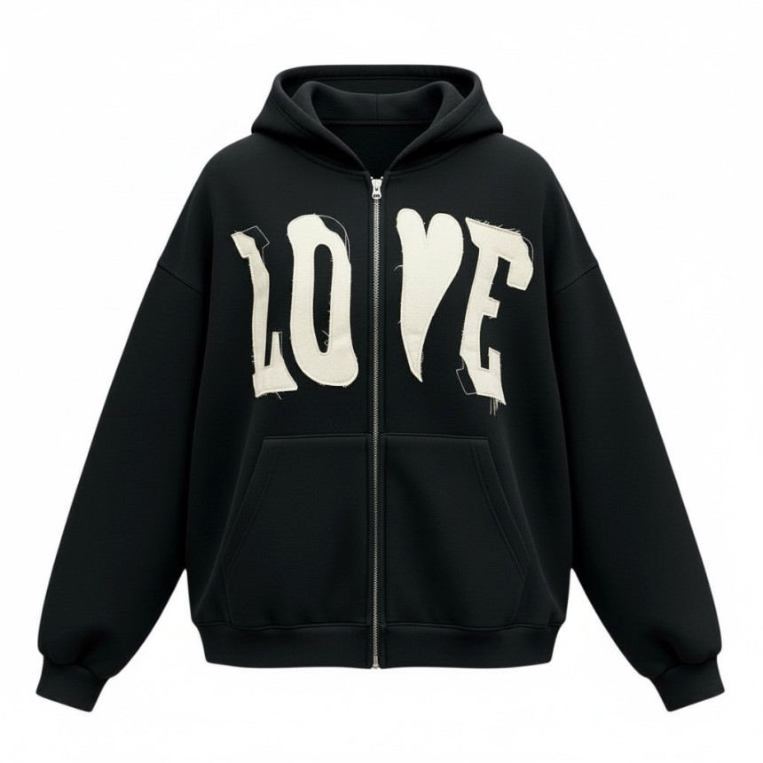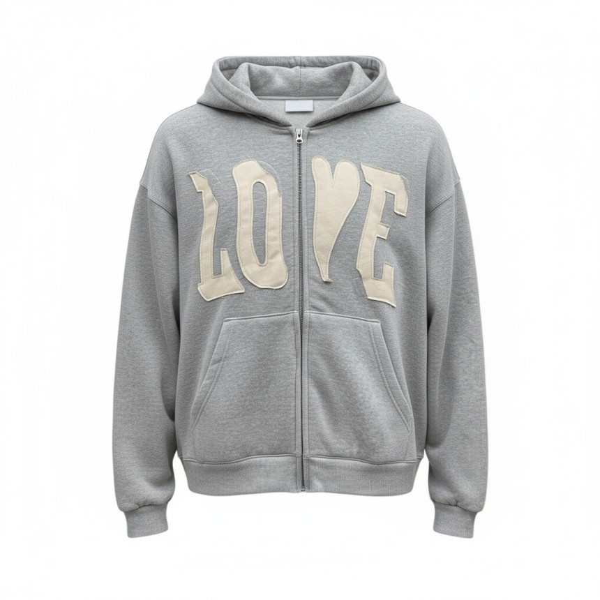 top - love patch zip hoody