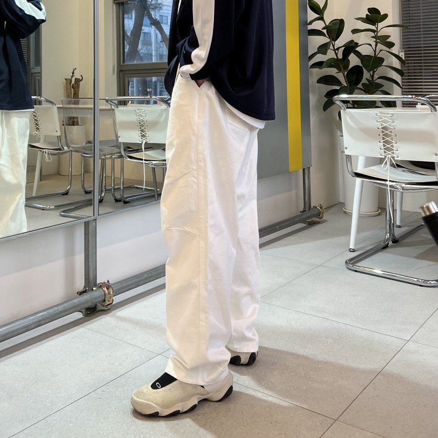 무릎 다트 봉제 디테일,