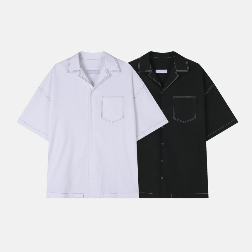 stitches open collar shirt (2color)