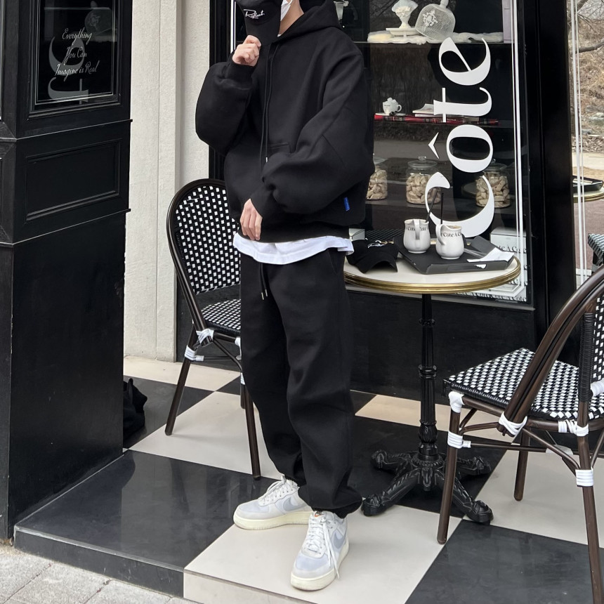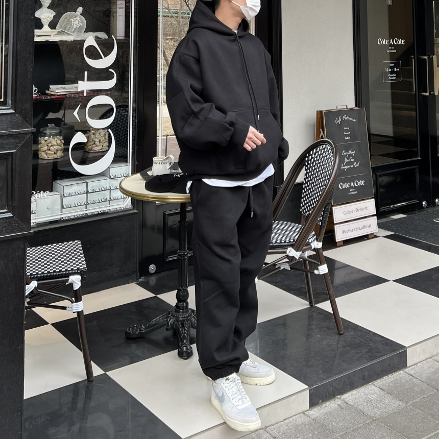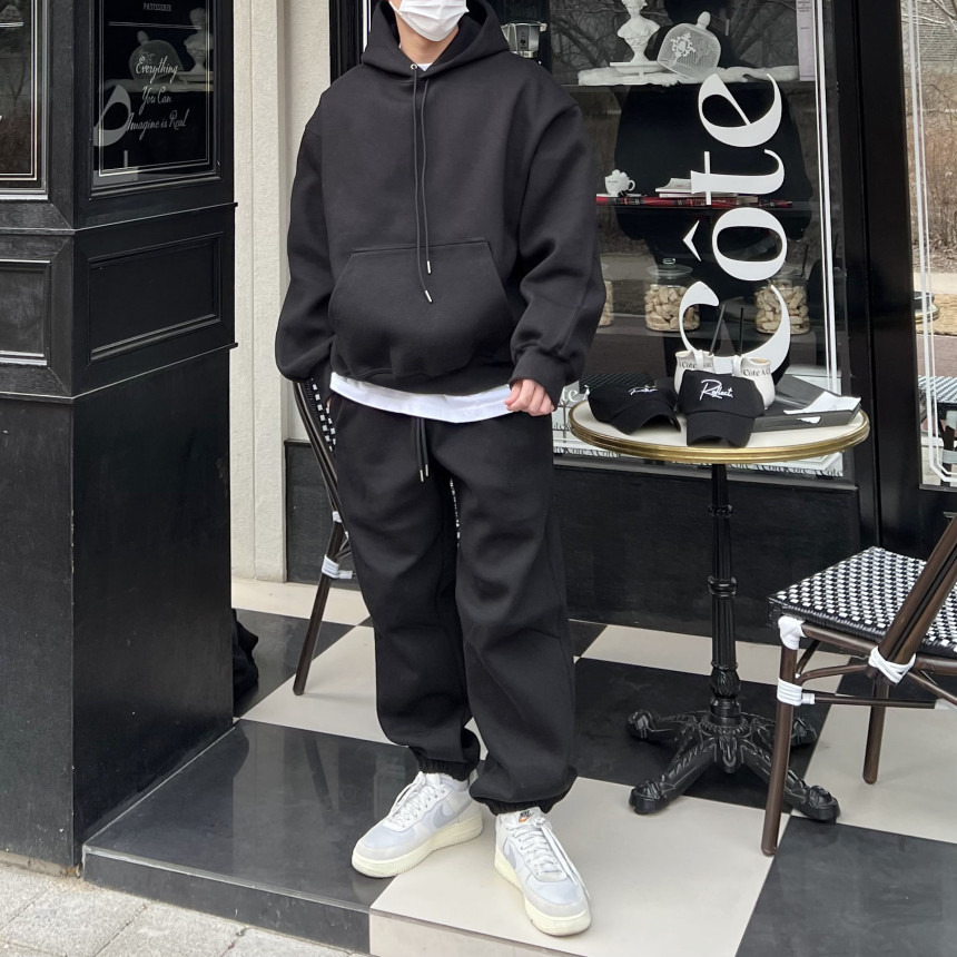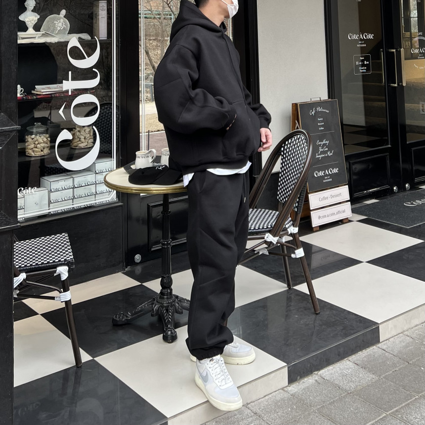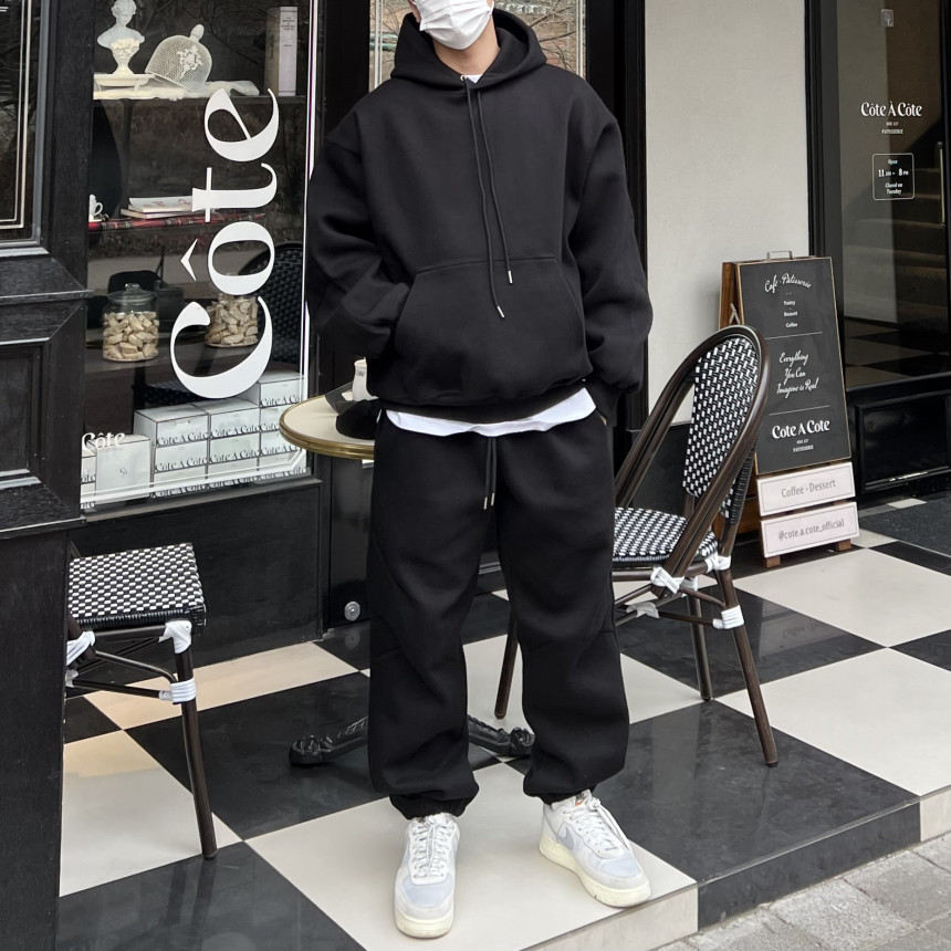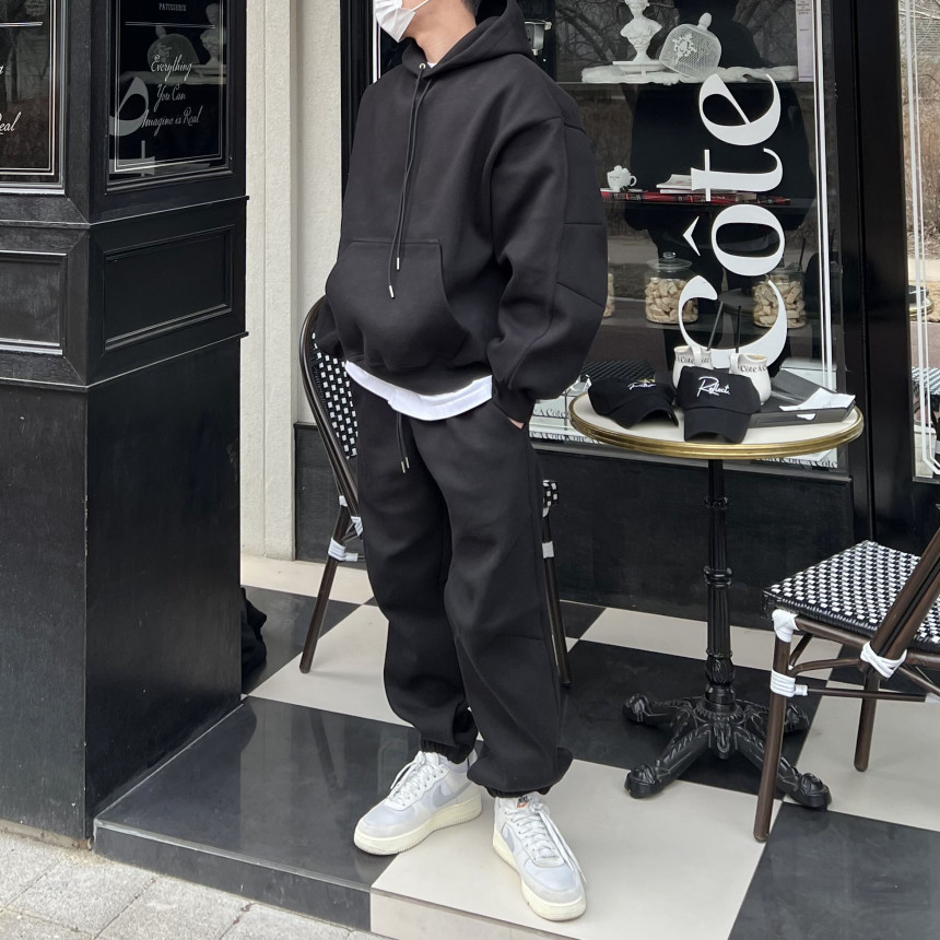 세트로 제작된 팬츠 / 후드 집업과