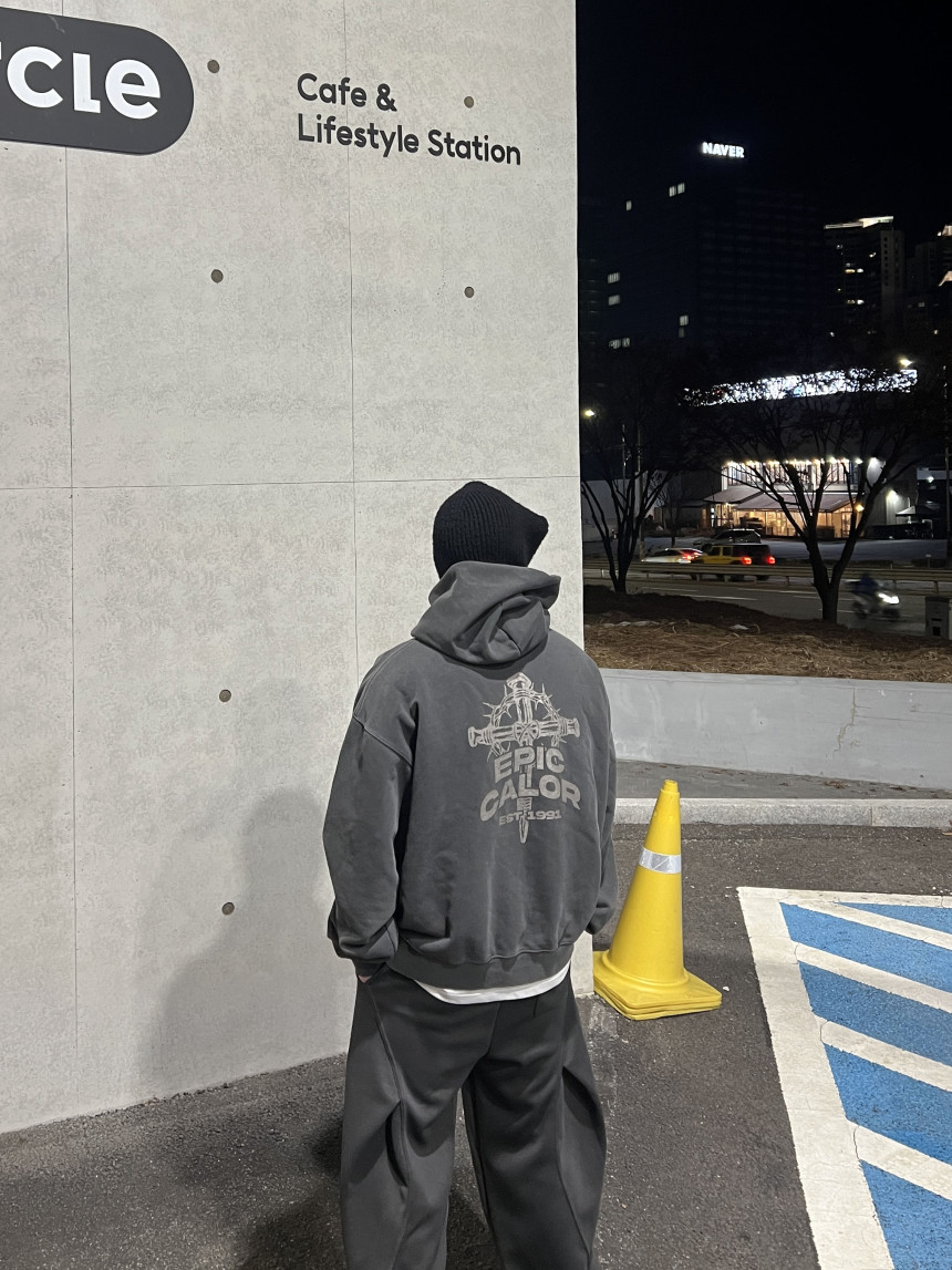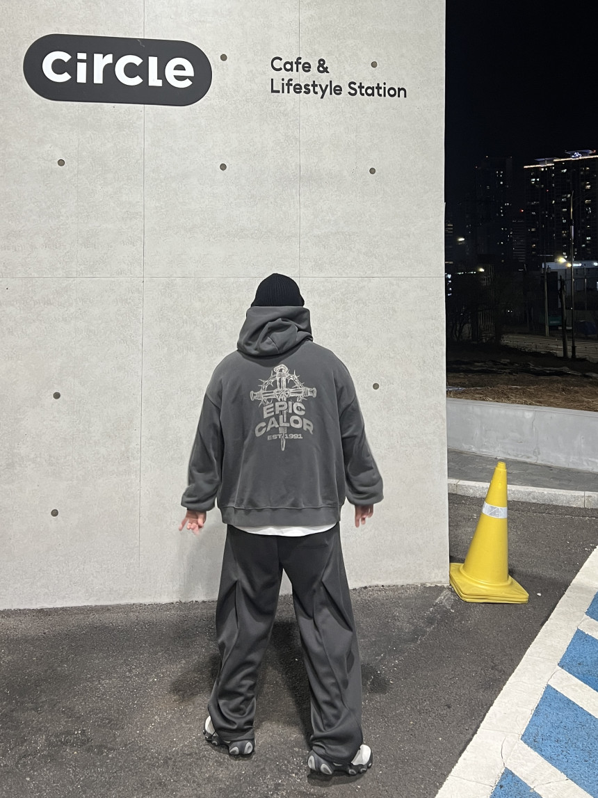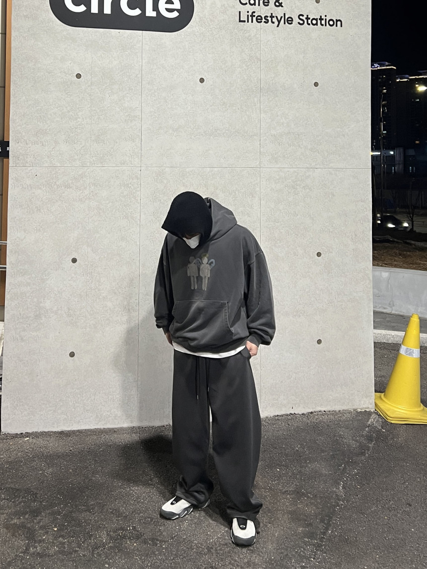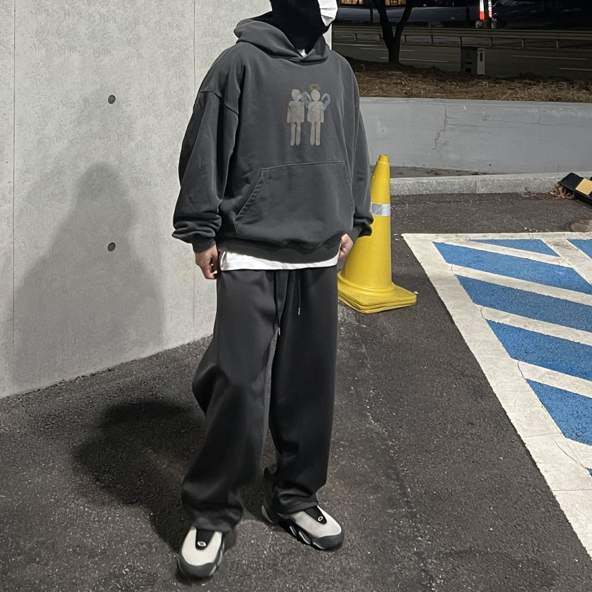 top - cross print hoody (charcoal)