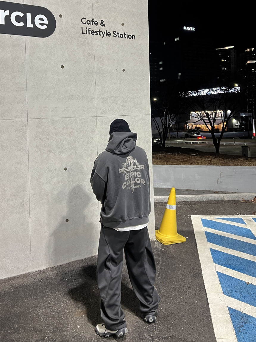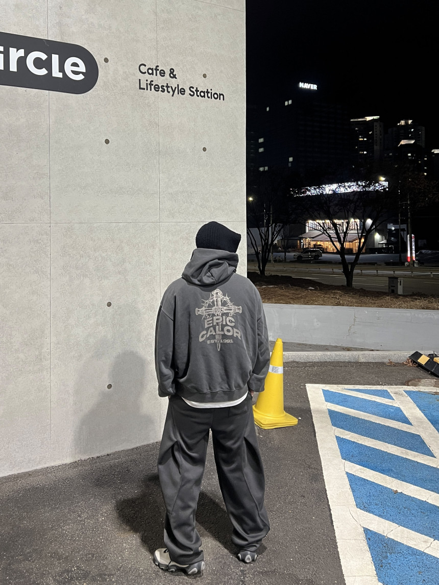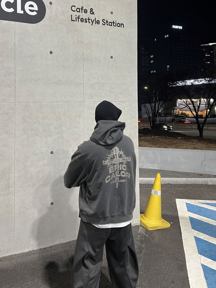 top - cross print hoody (charcoal)