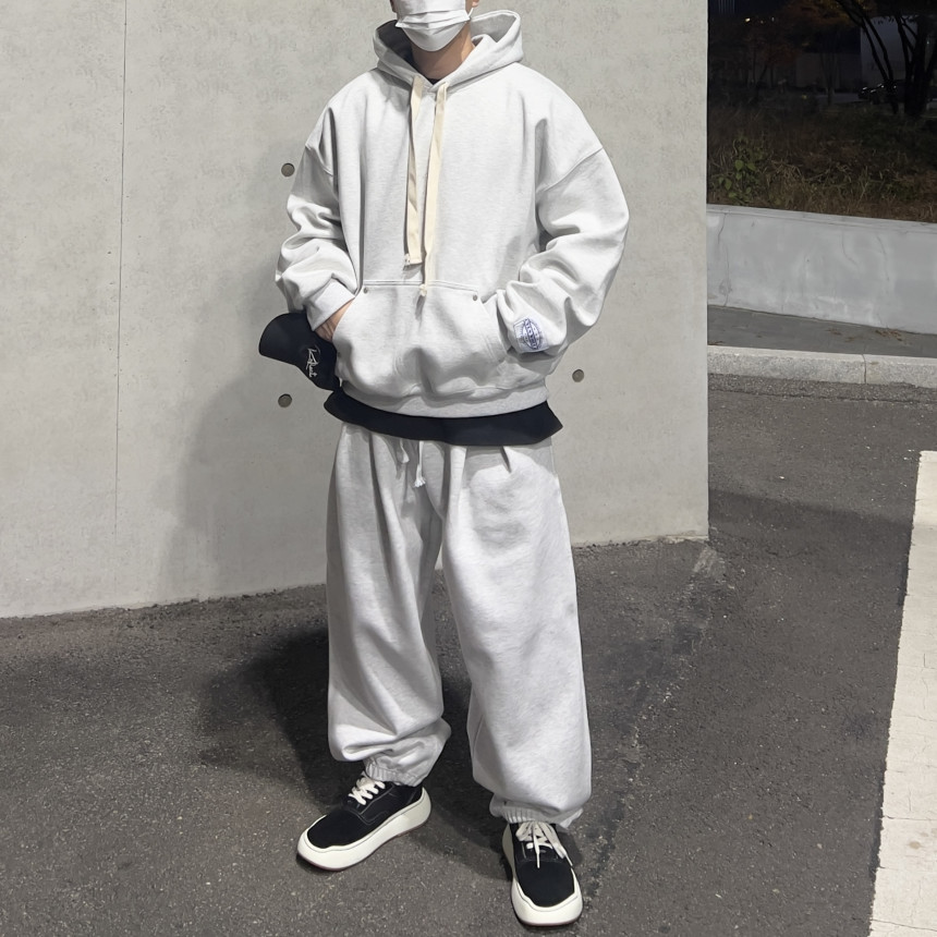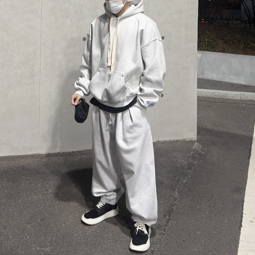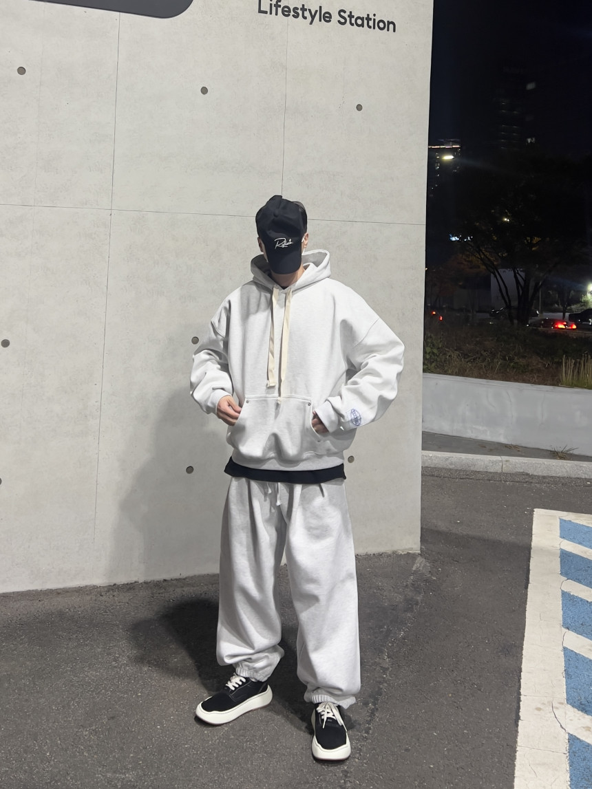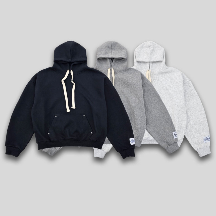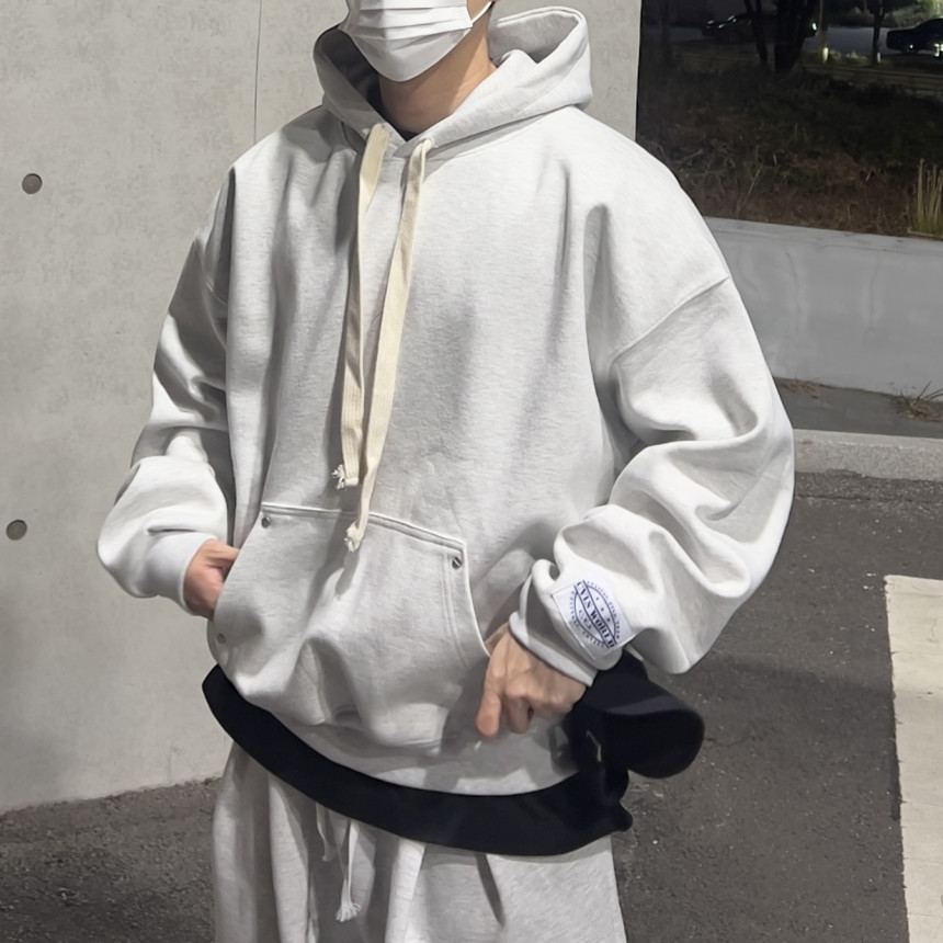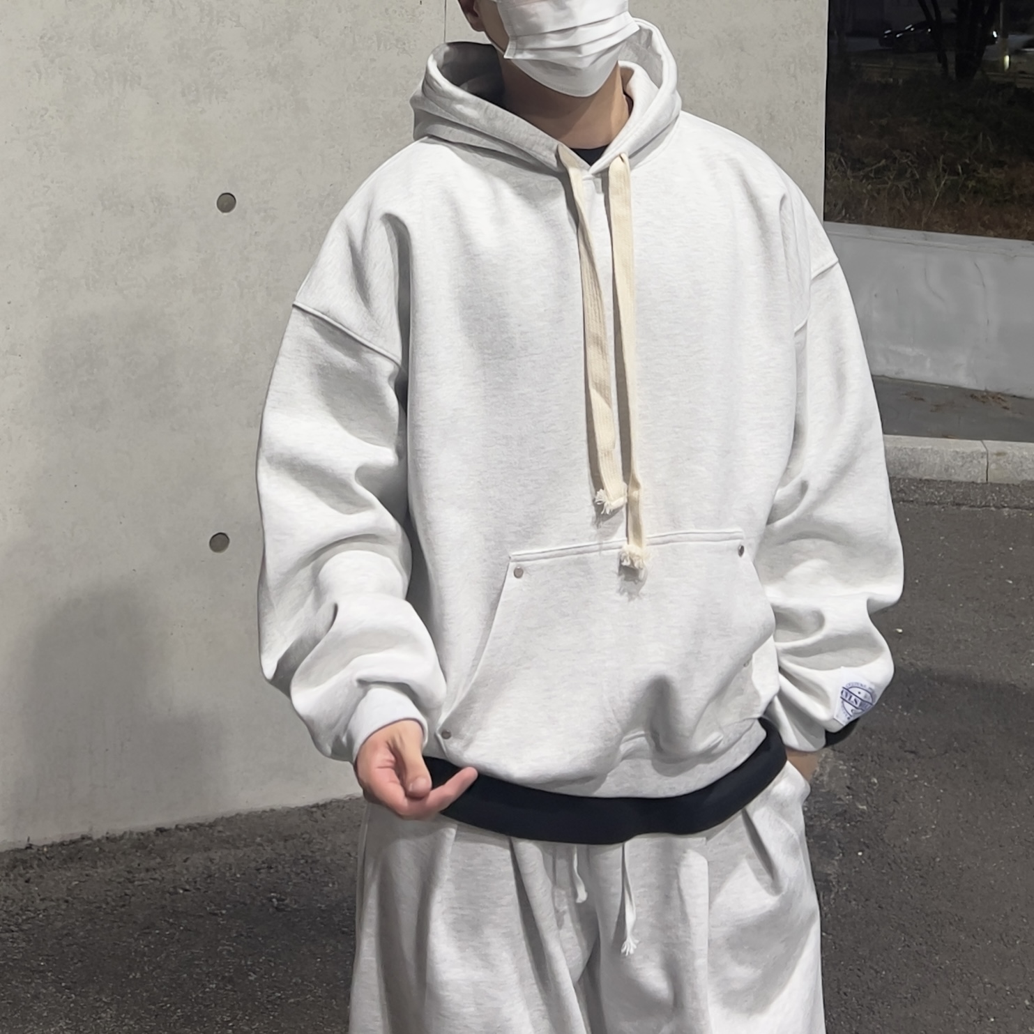 - 후드끈 대신 헤링본 테이프 디테일 / 캥거루 주머니에 리벳 디테일