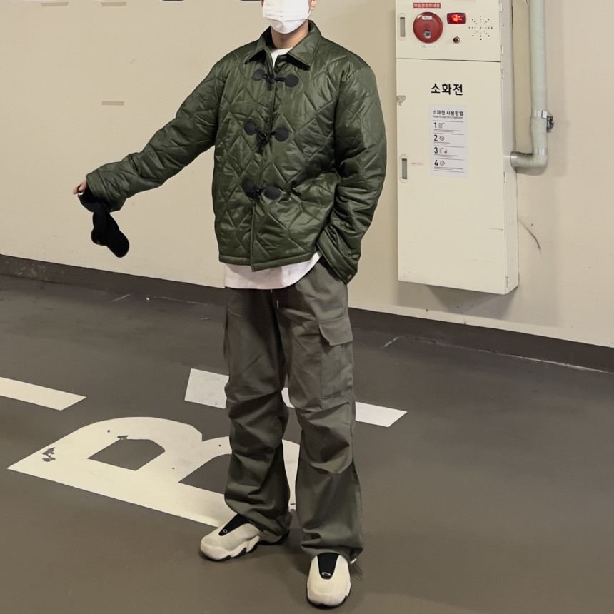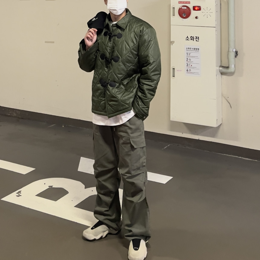 제작된 더플 디자인에 퀼팅 패딩 입니다:)
