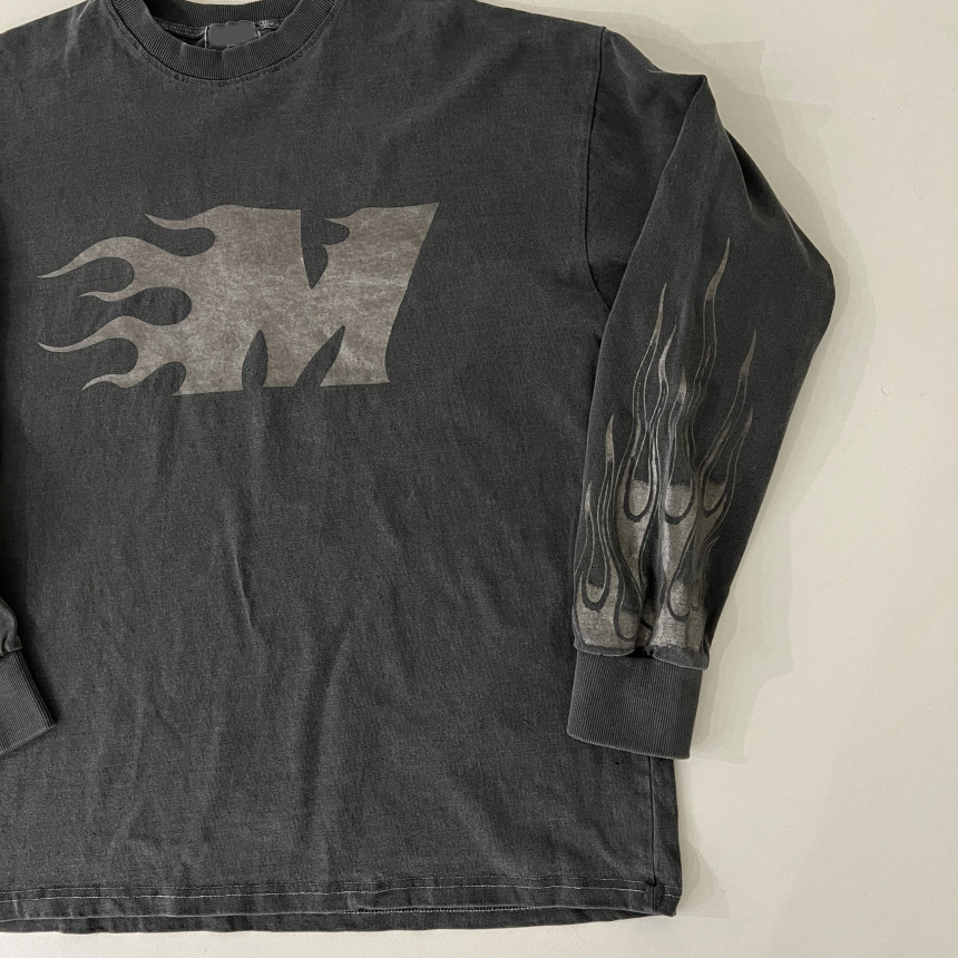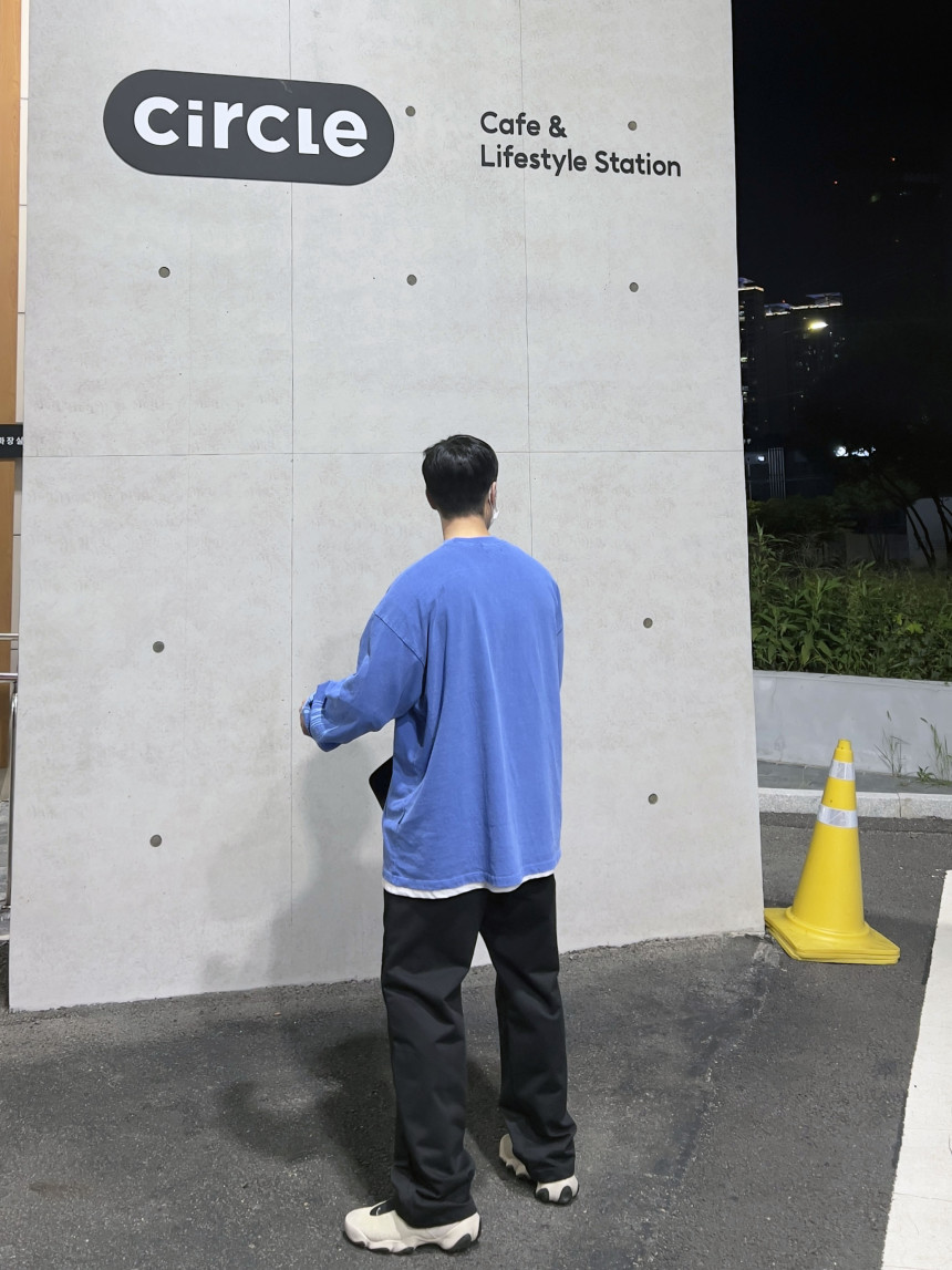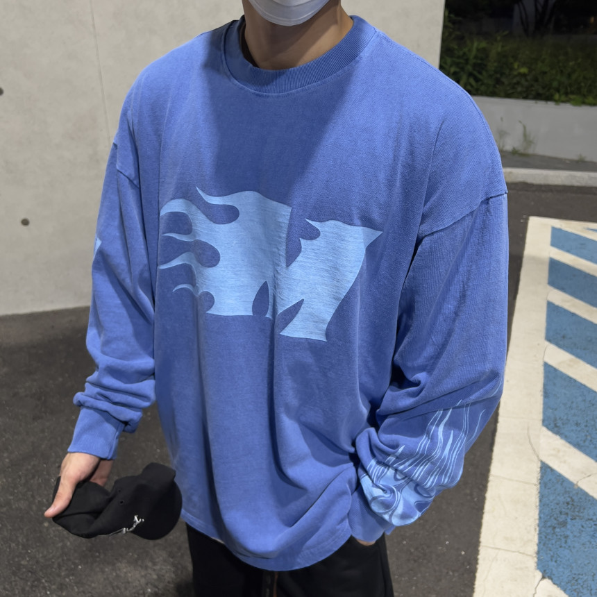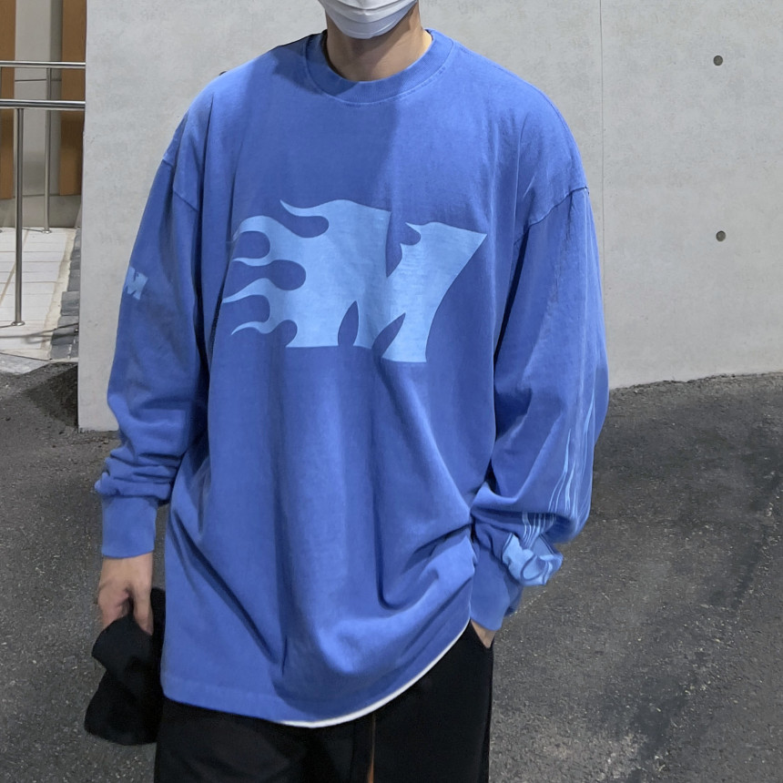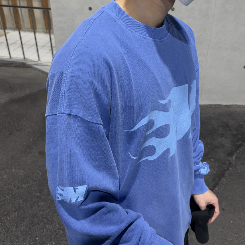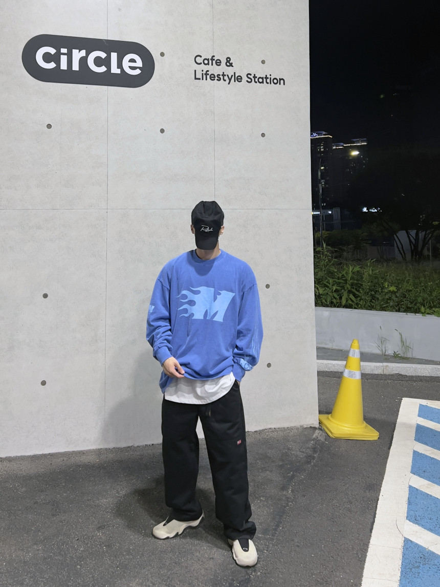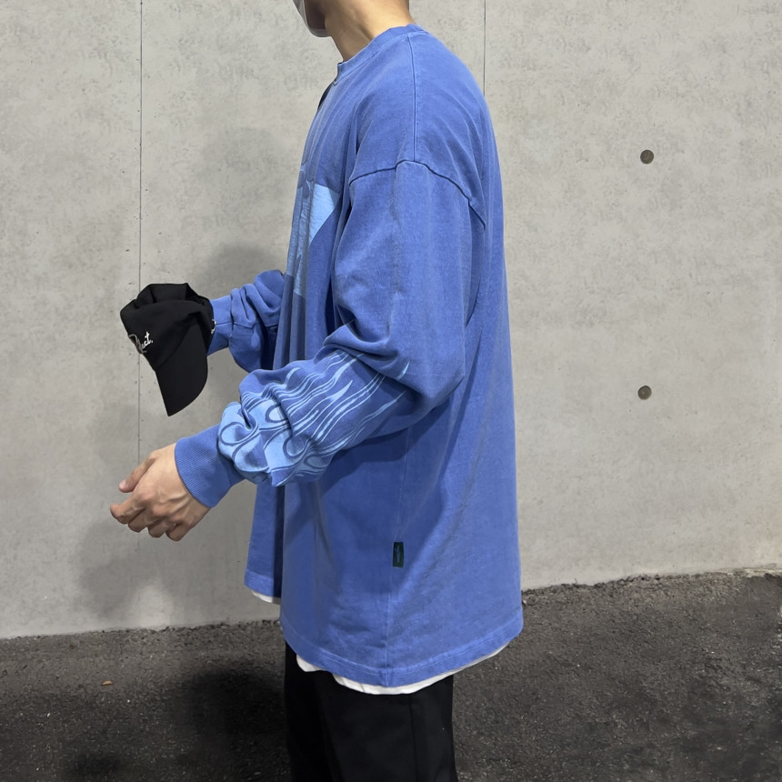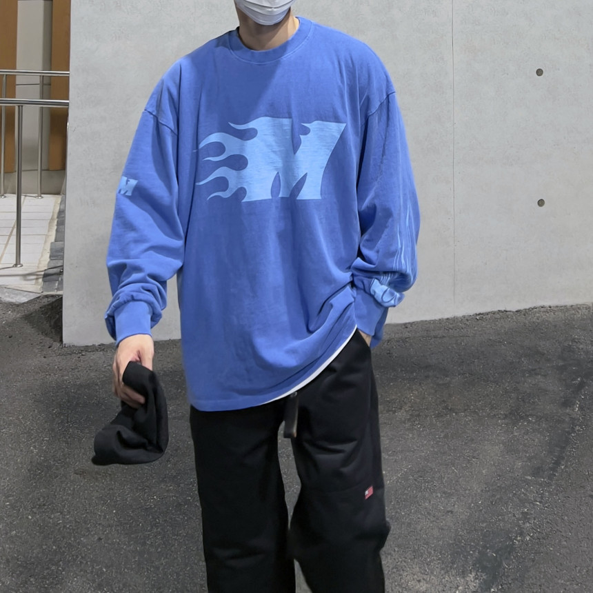 오버한 핏 감에 긴팔 티셔츠입니다.