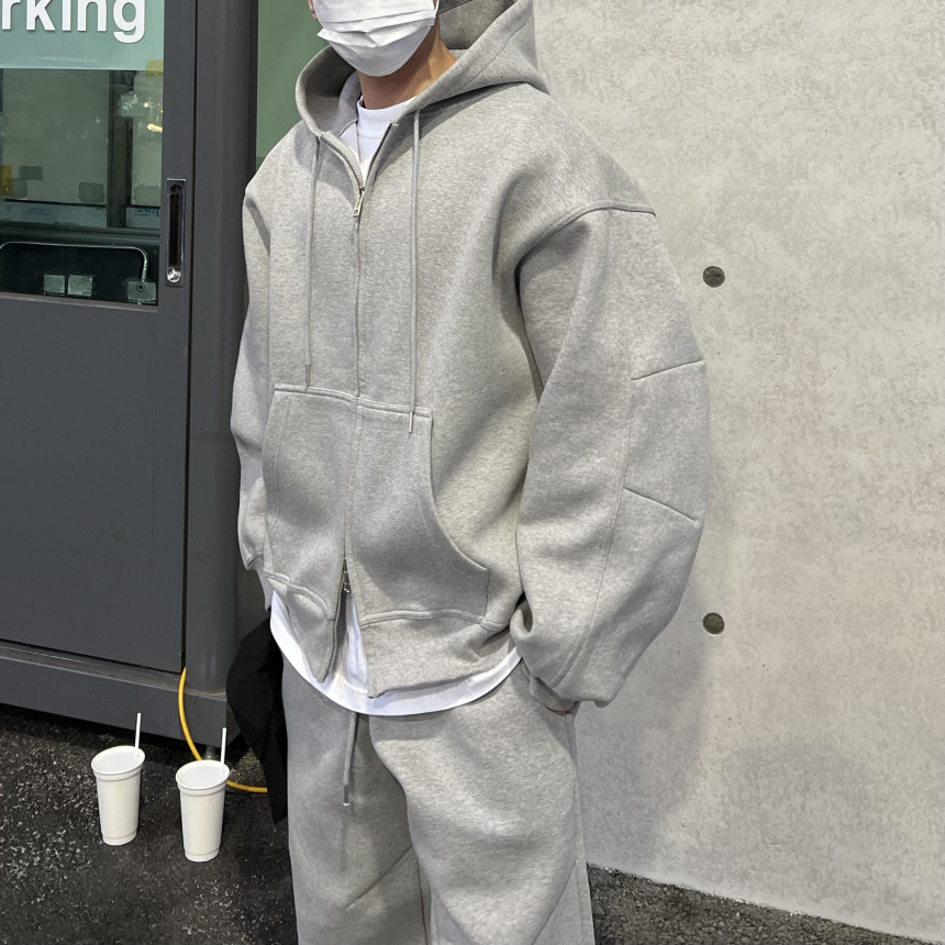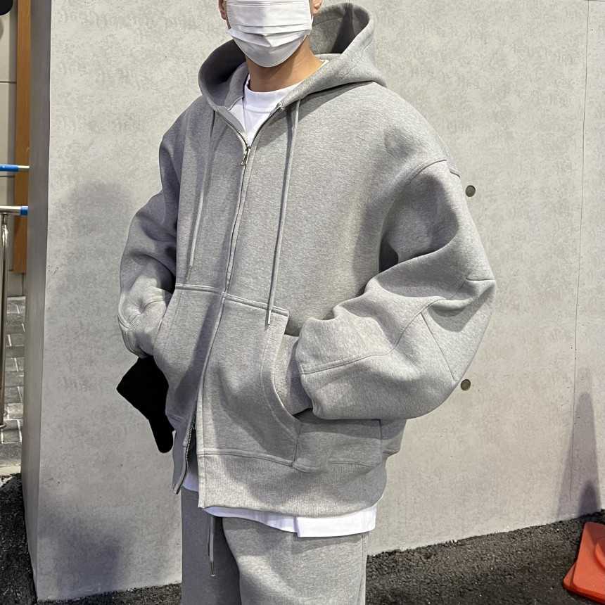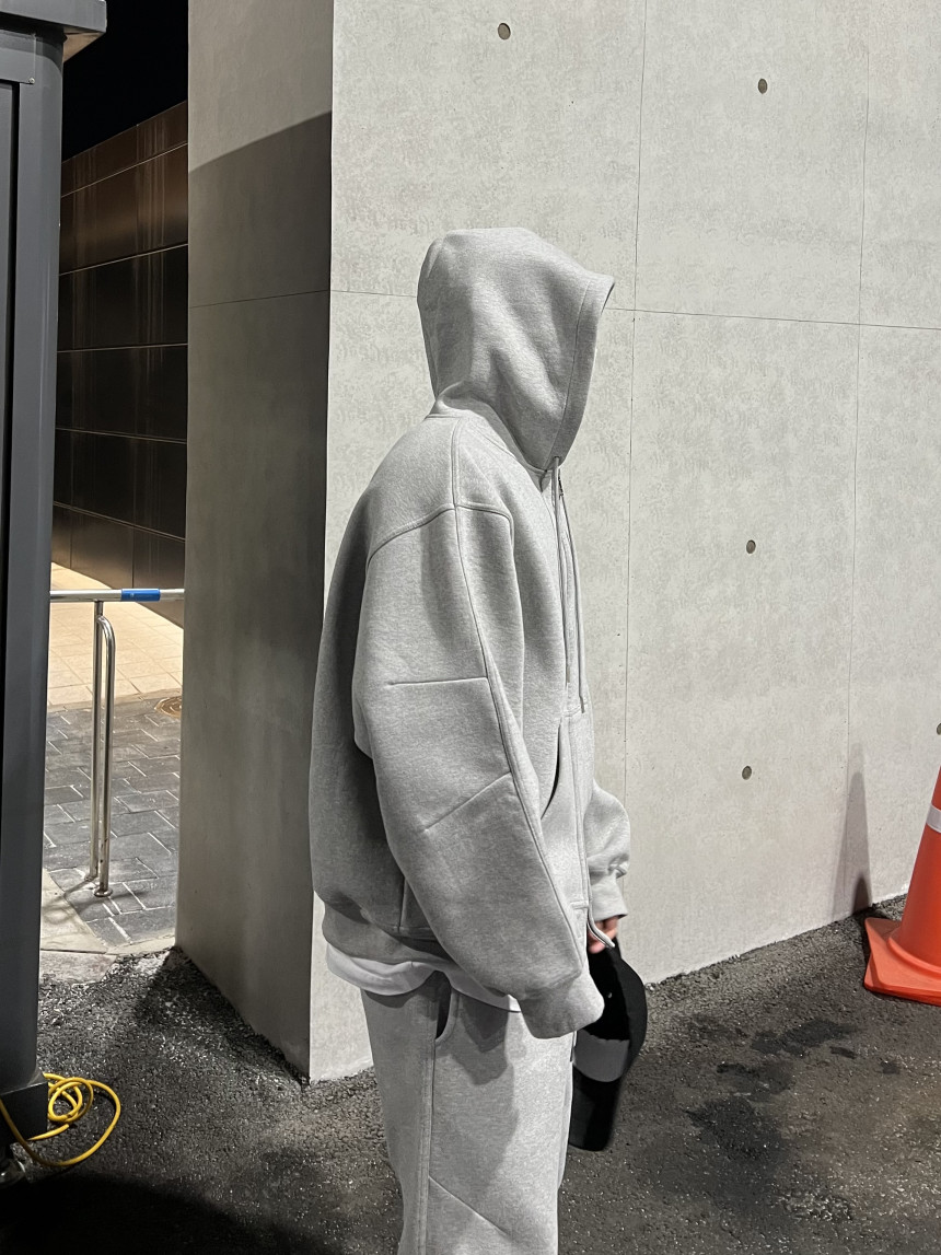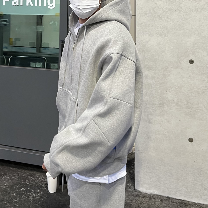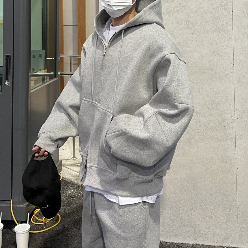 들어간 오버 한 사이즈감의 후드 집업입니다.