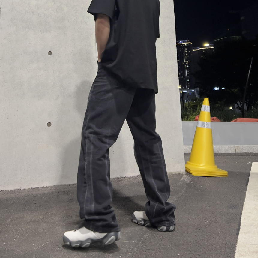 플레어 핏의 샌드 바이오 워싱감이 포인트인