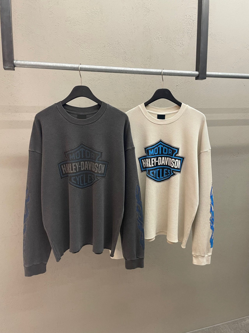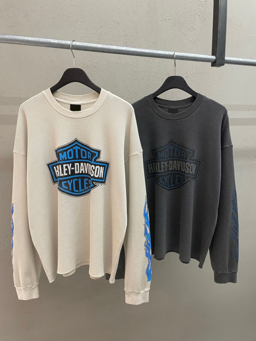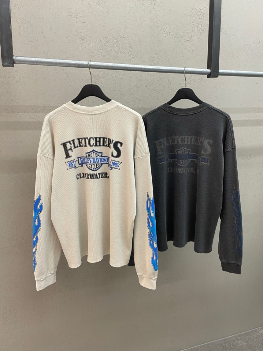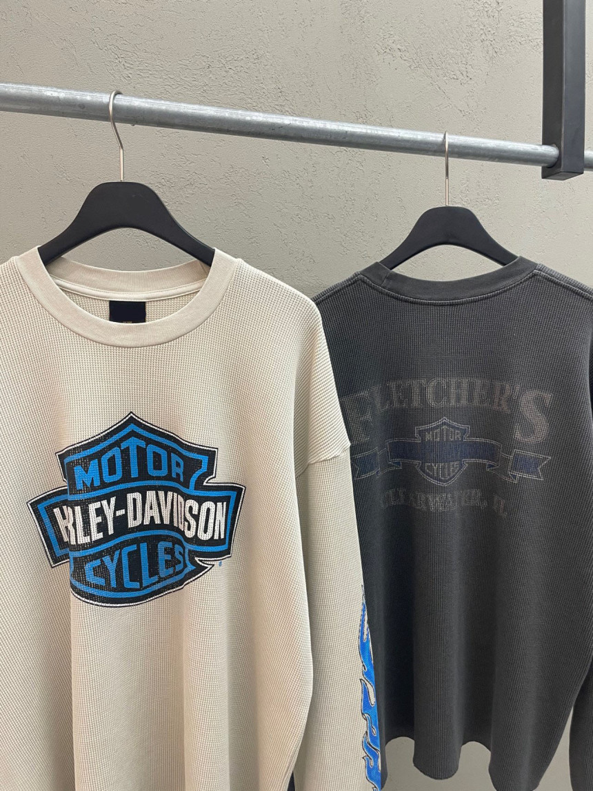 - 세미 크롭한 핏에 와플 소재, 드롭숄더 패턴의 긴팔 티셔츠 입니다.