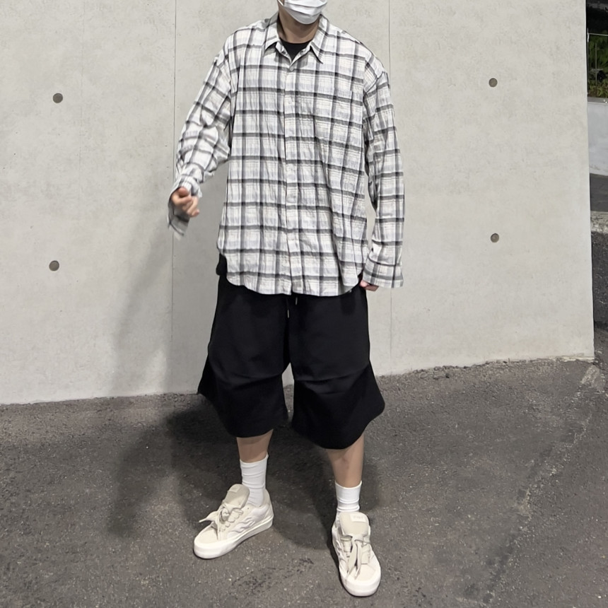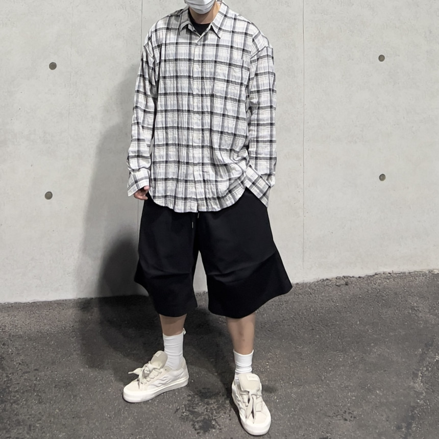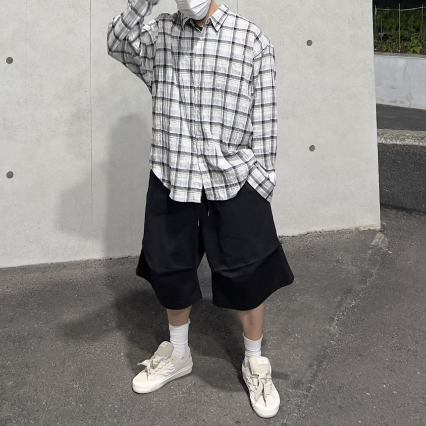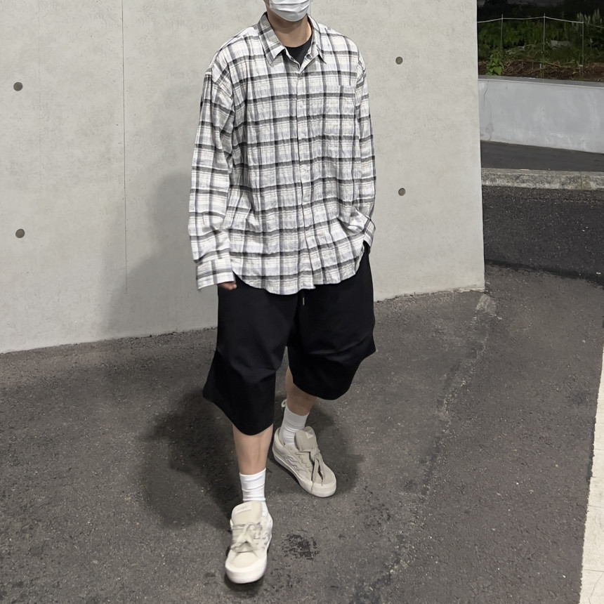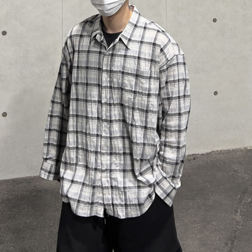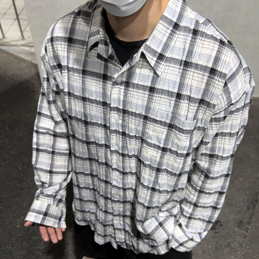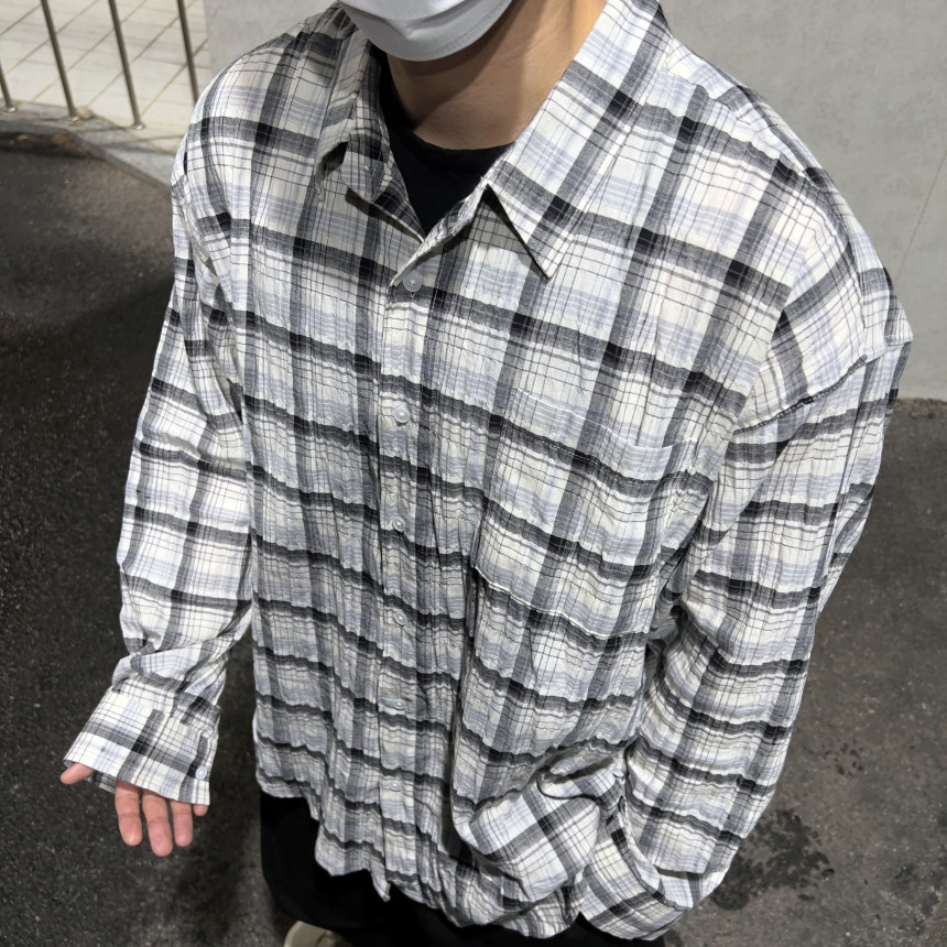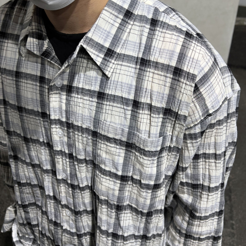 - 모던한 느낌 체크에 주름 가공이 되어있는 셔츠