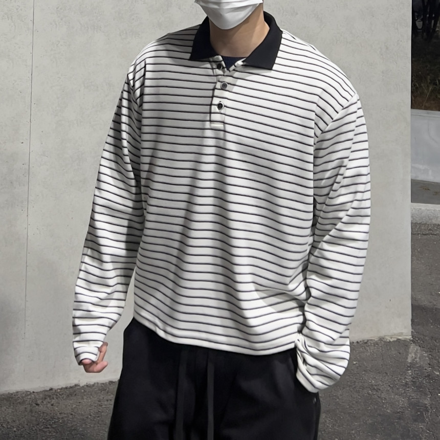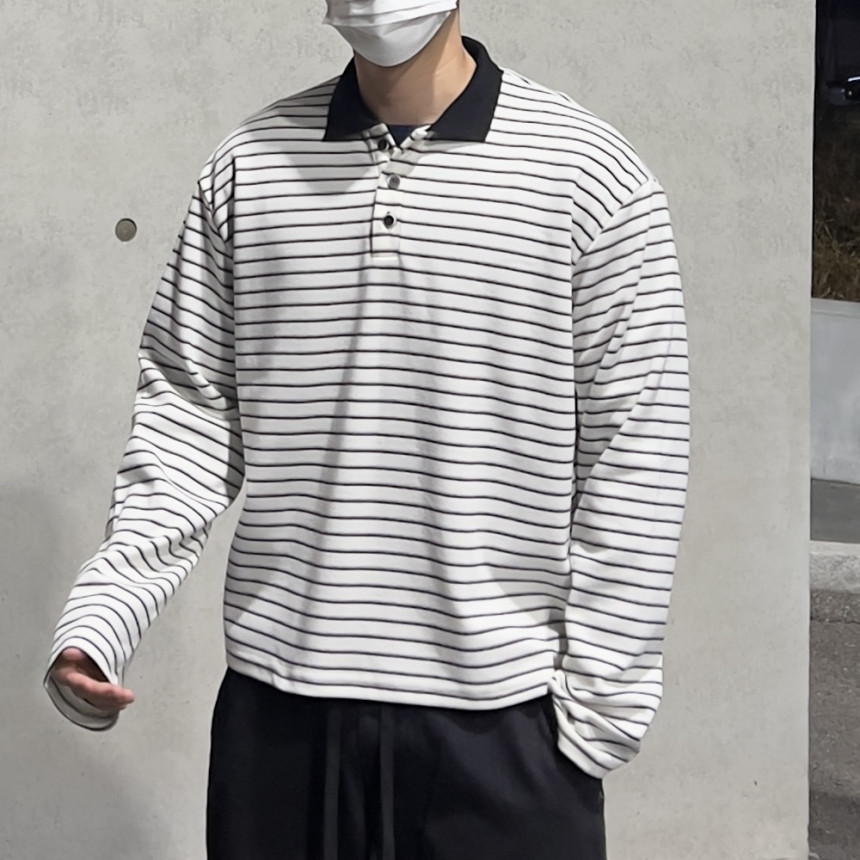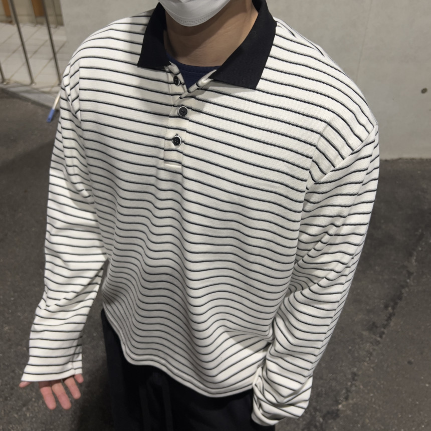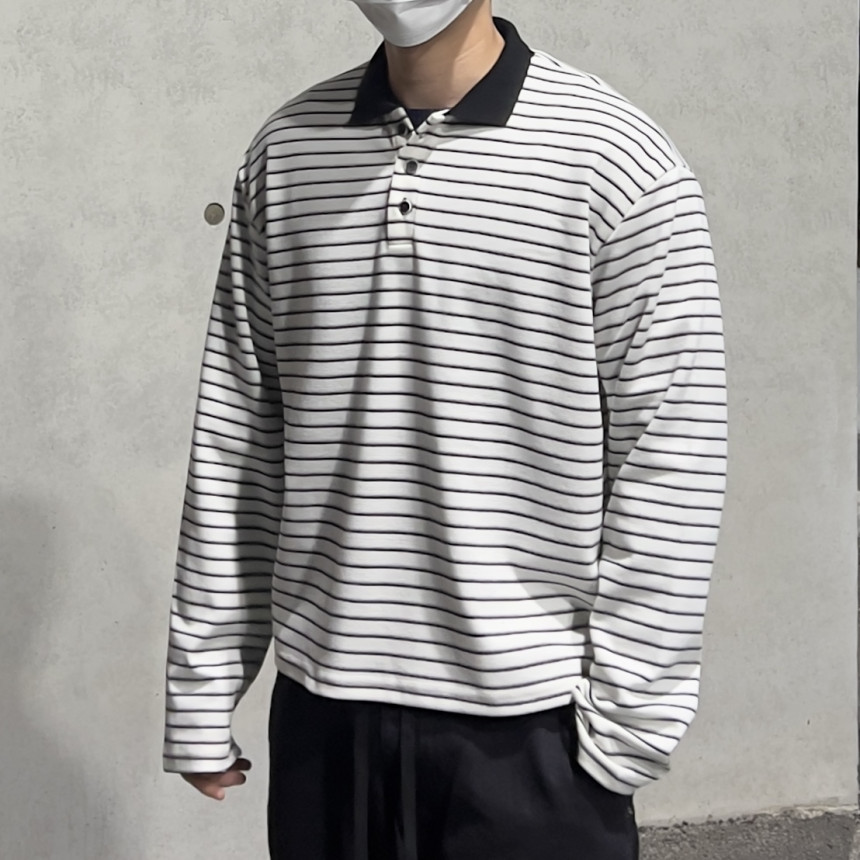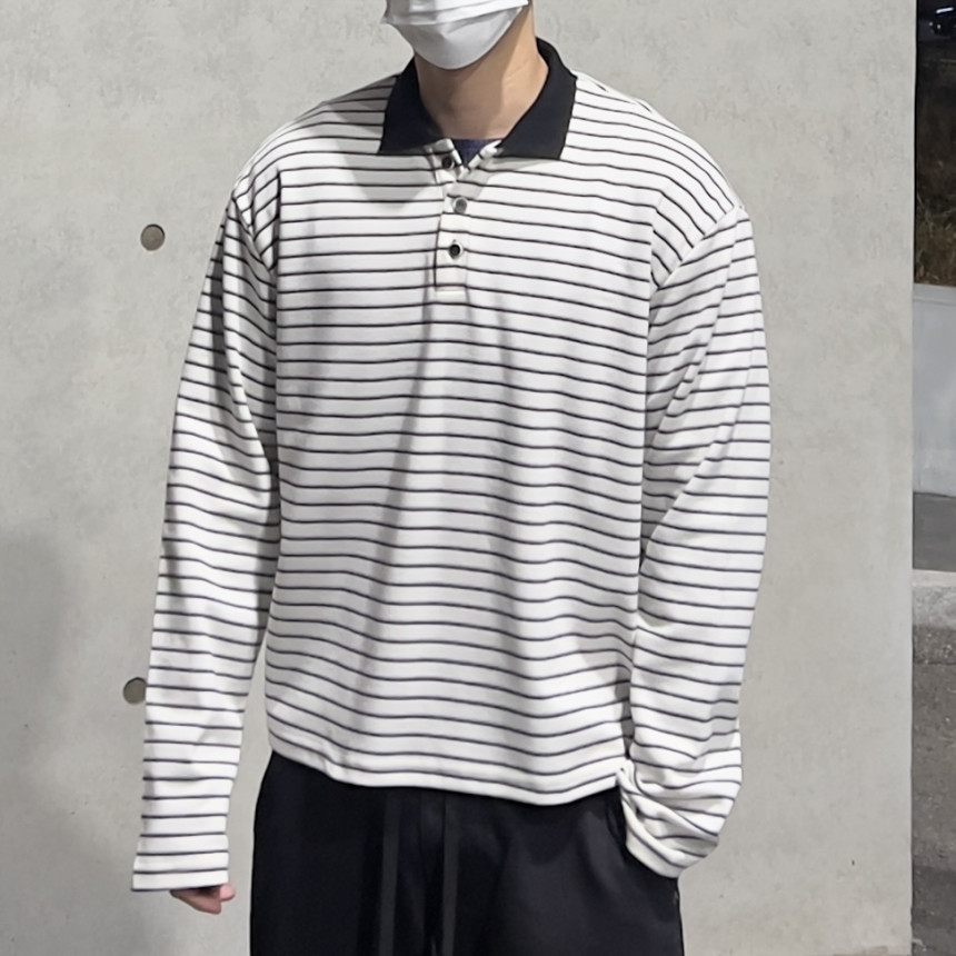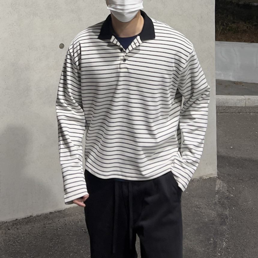 stripe crop collar T - (2color)