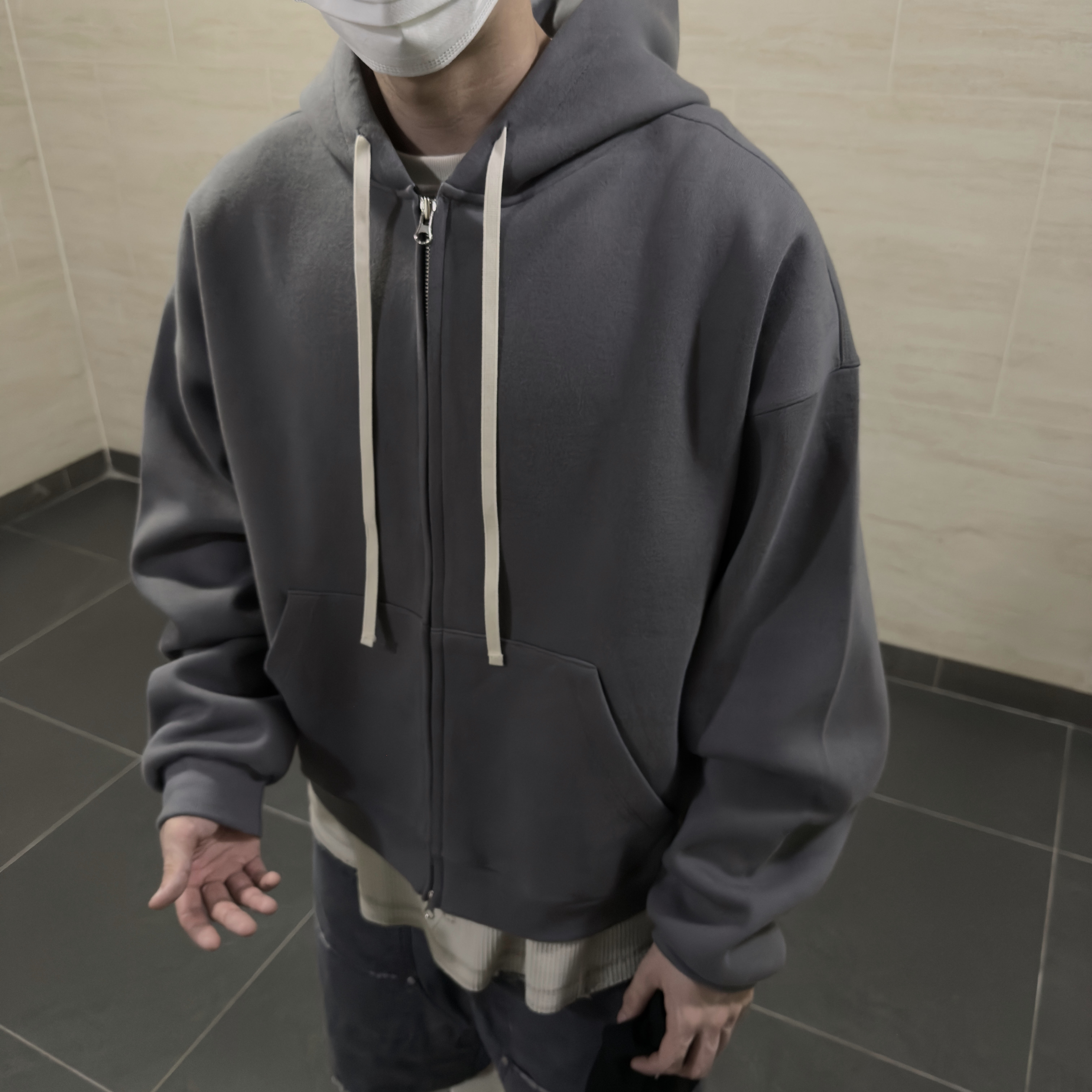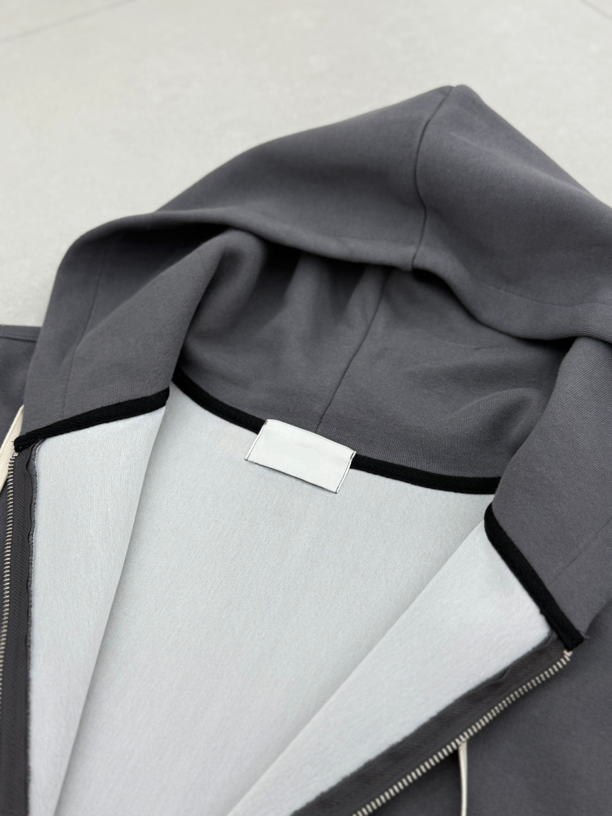 - 후드 끈이 헤링본 테이프로 들어간 디테일 / 이중지 소재로 핏을 잡아주는 탄탄한 느낌