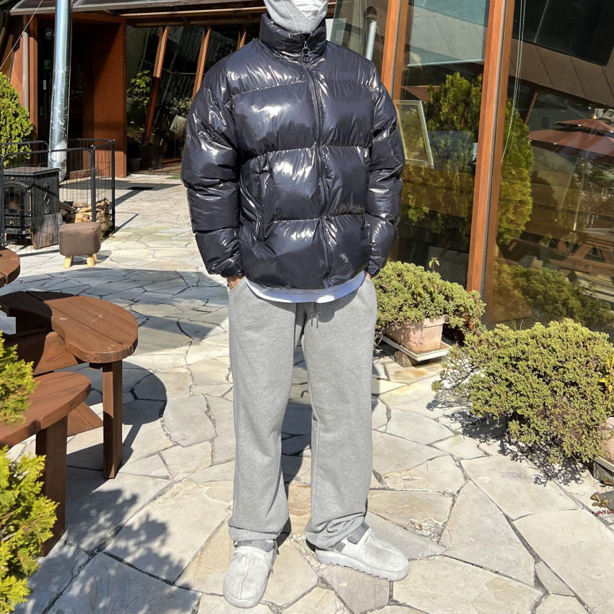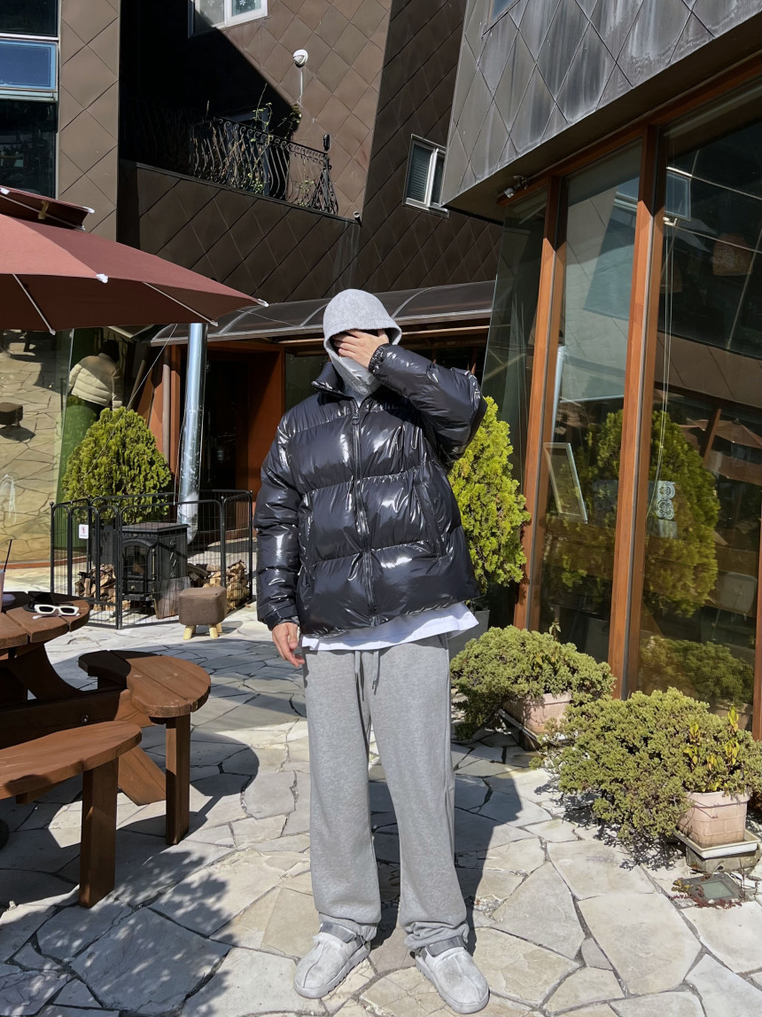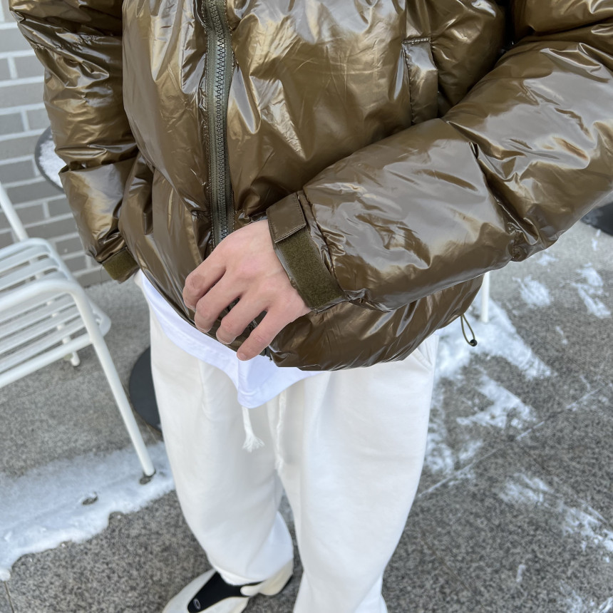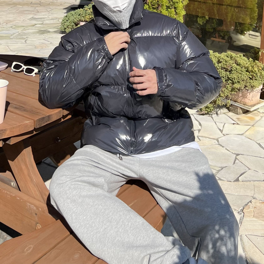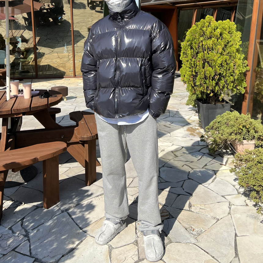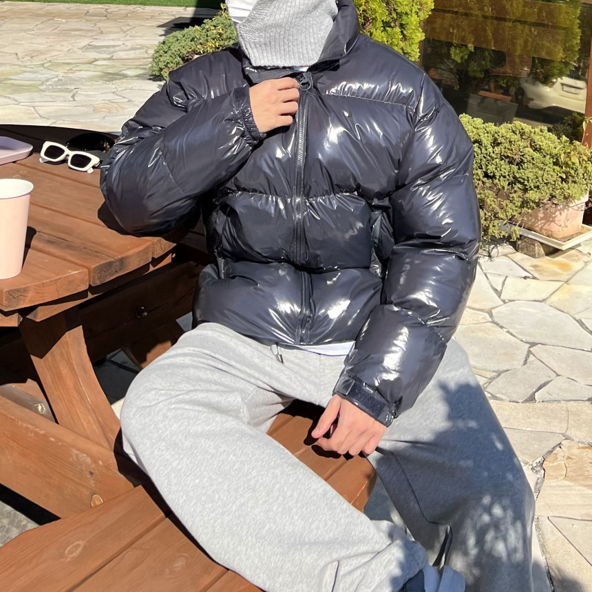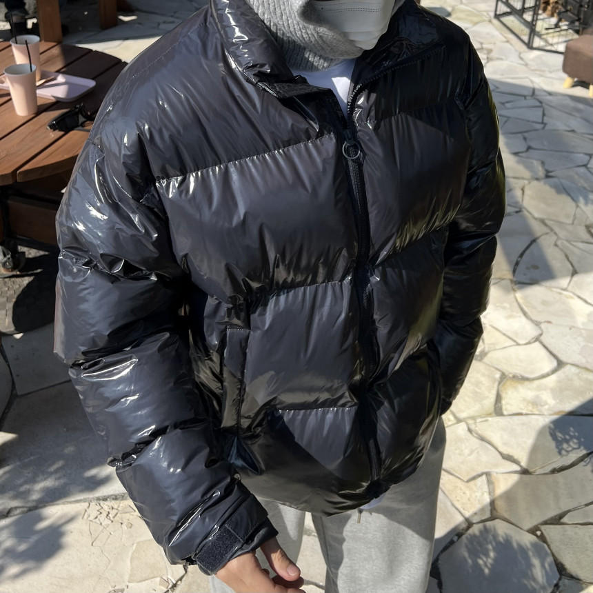glossy padded vest 제품의 패딩 점퍼 버전이며