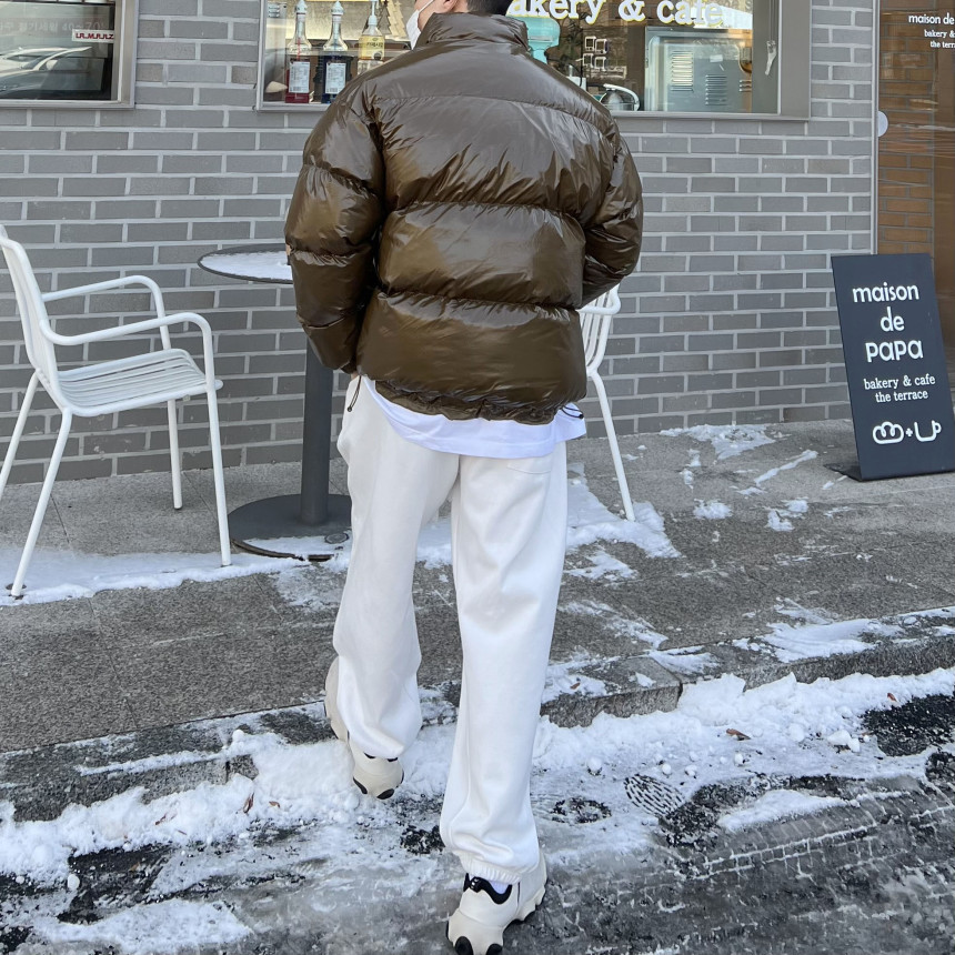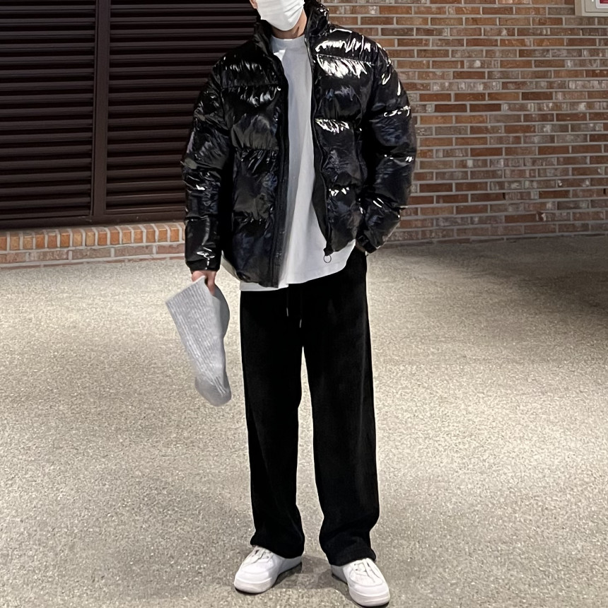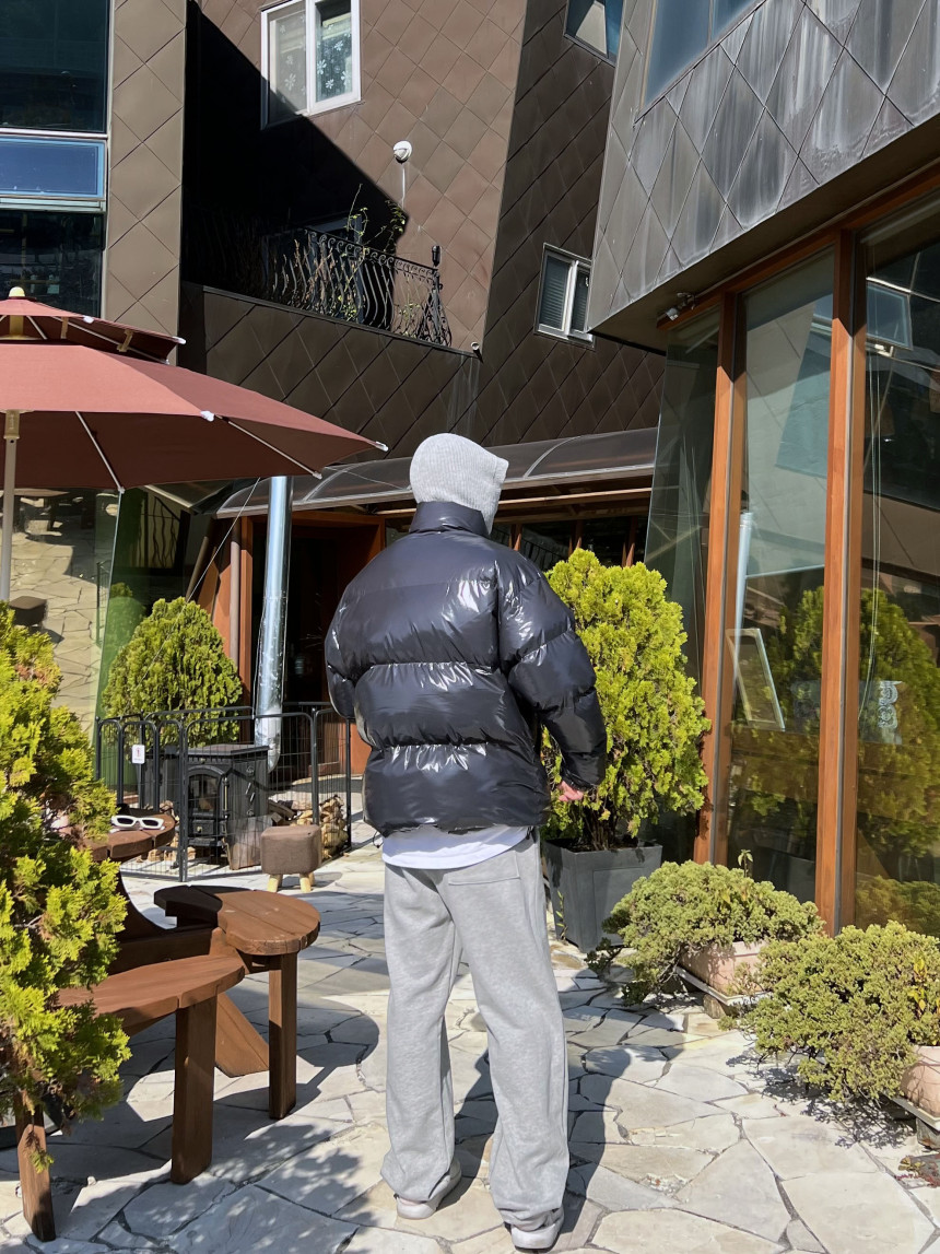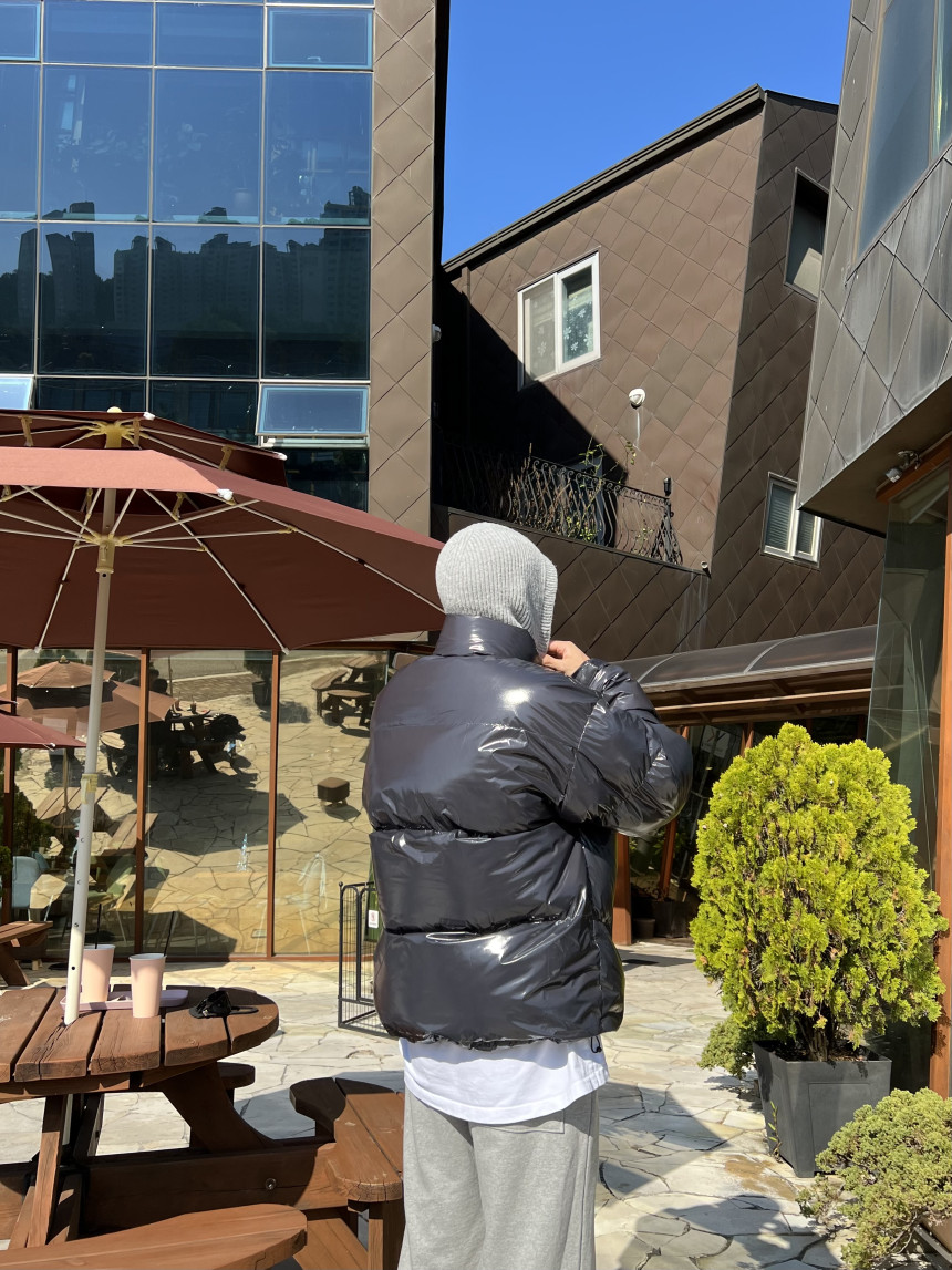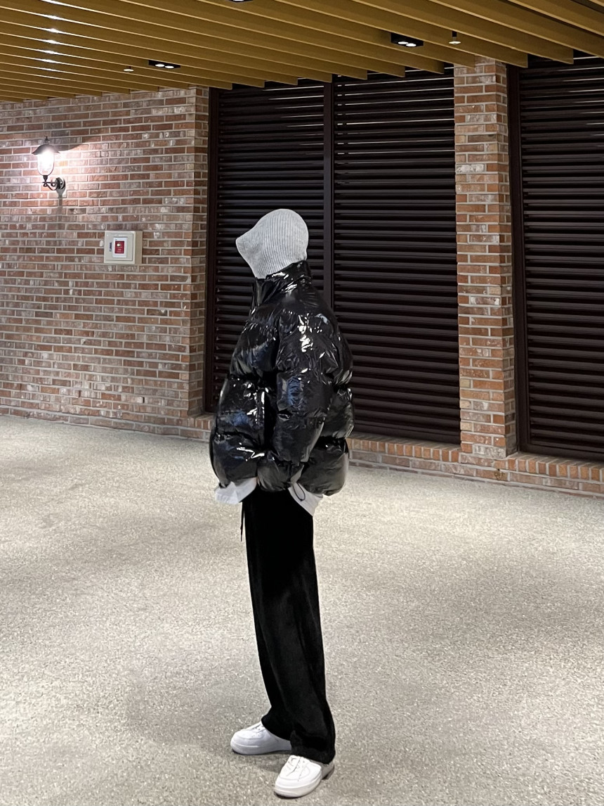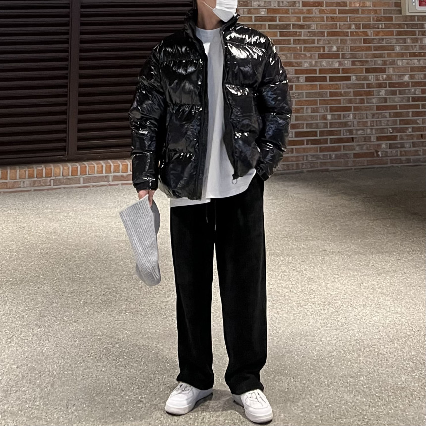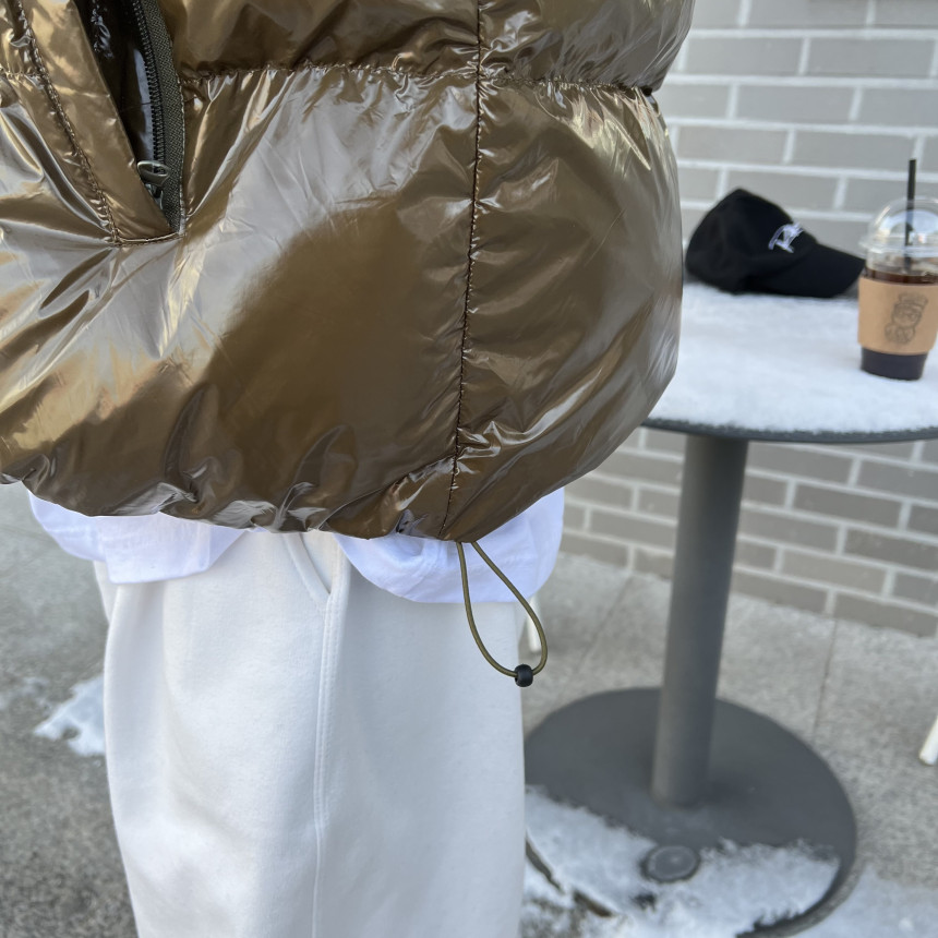 glossy padded vest 제품의 패딩 점퍼 버전이며