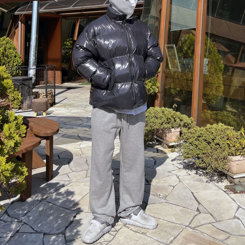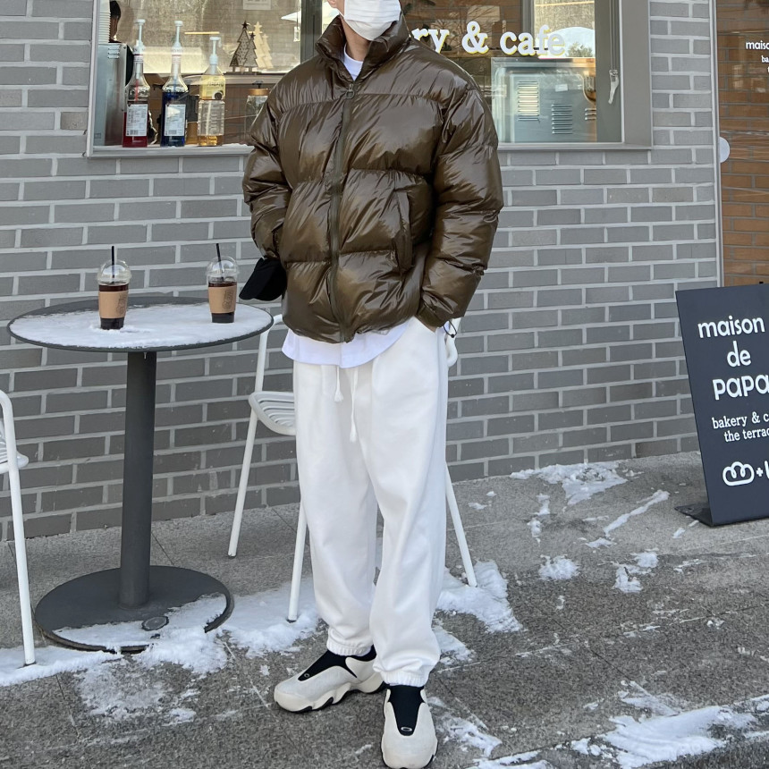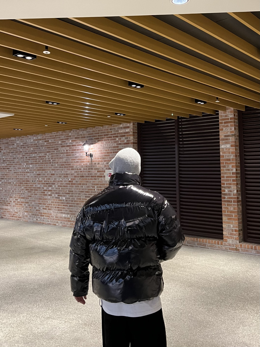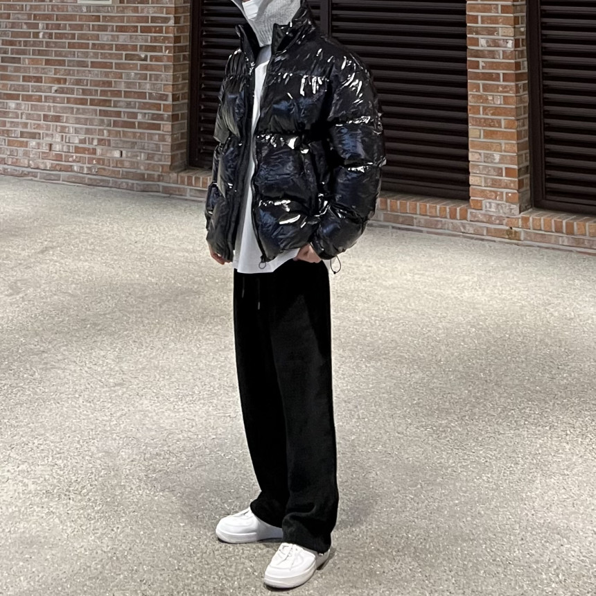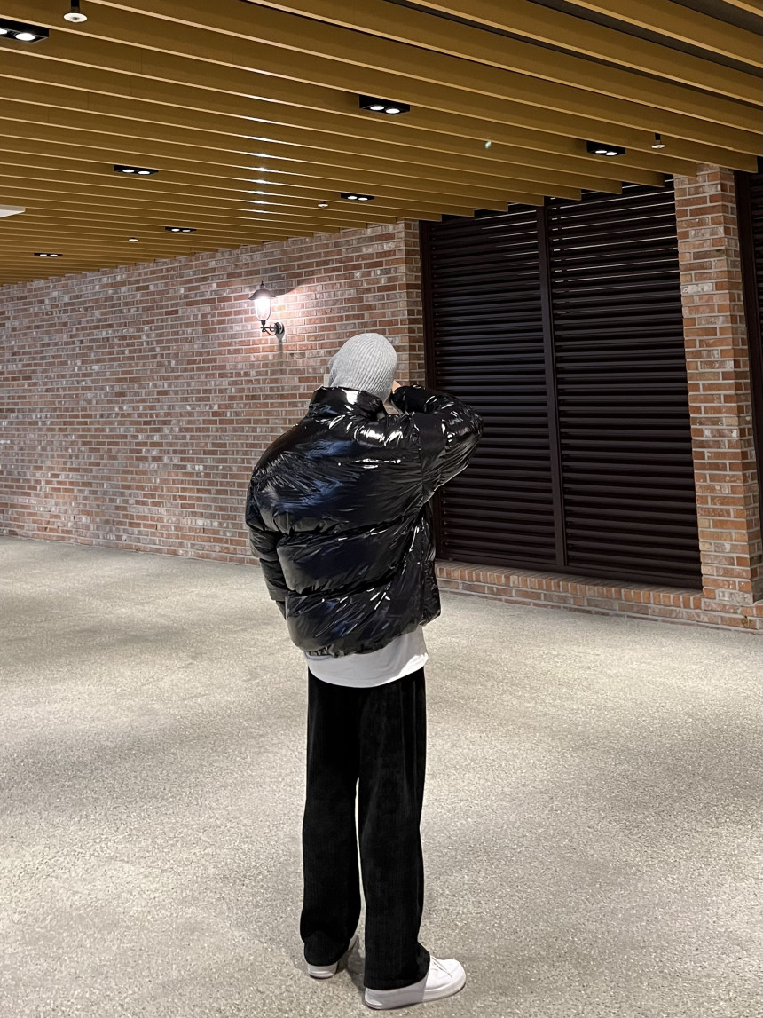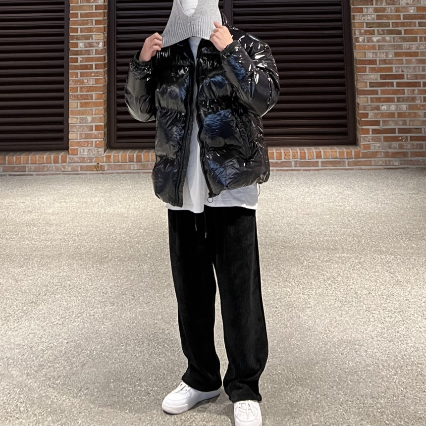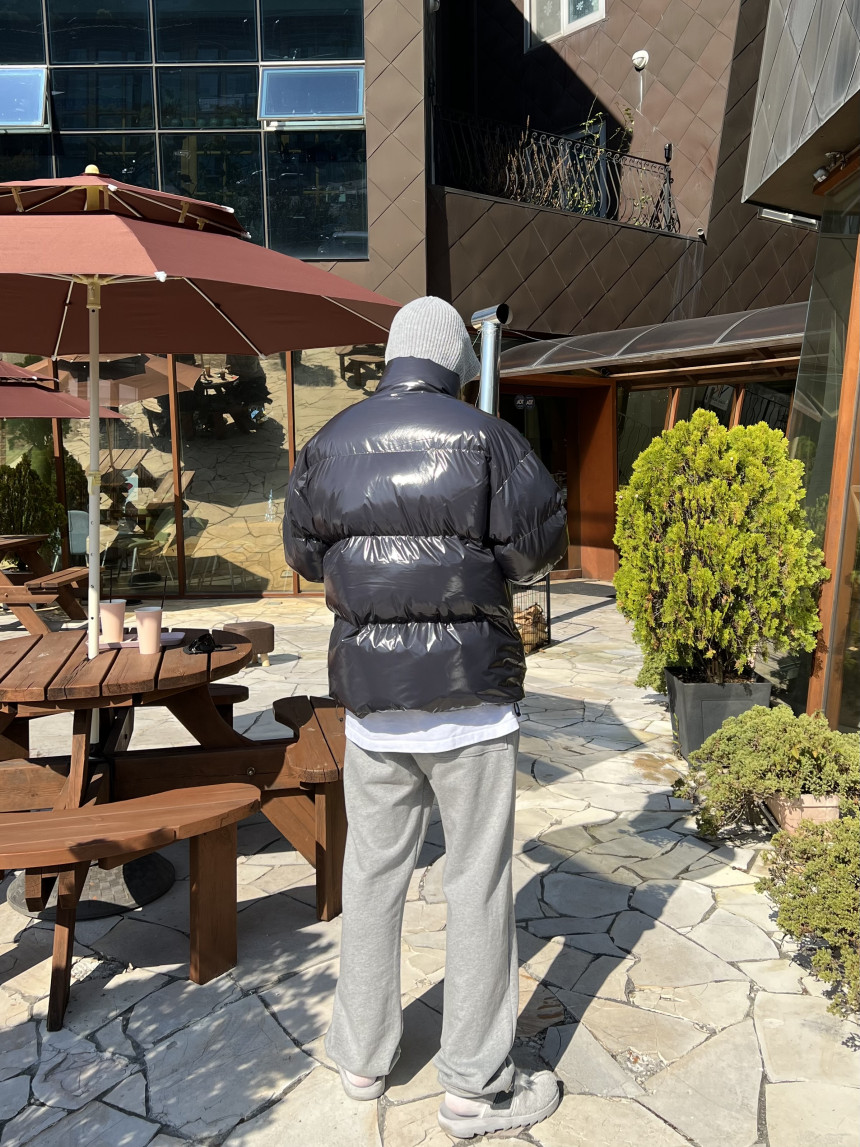 glossy padded vest 제품의 패딩 점퍼 버전이며