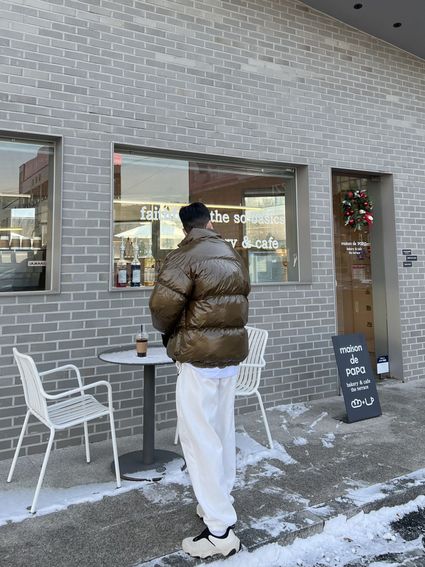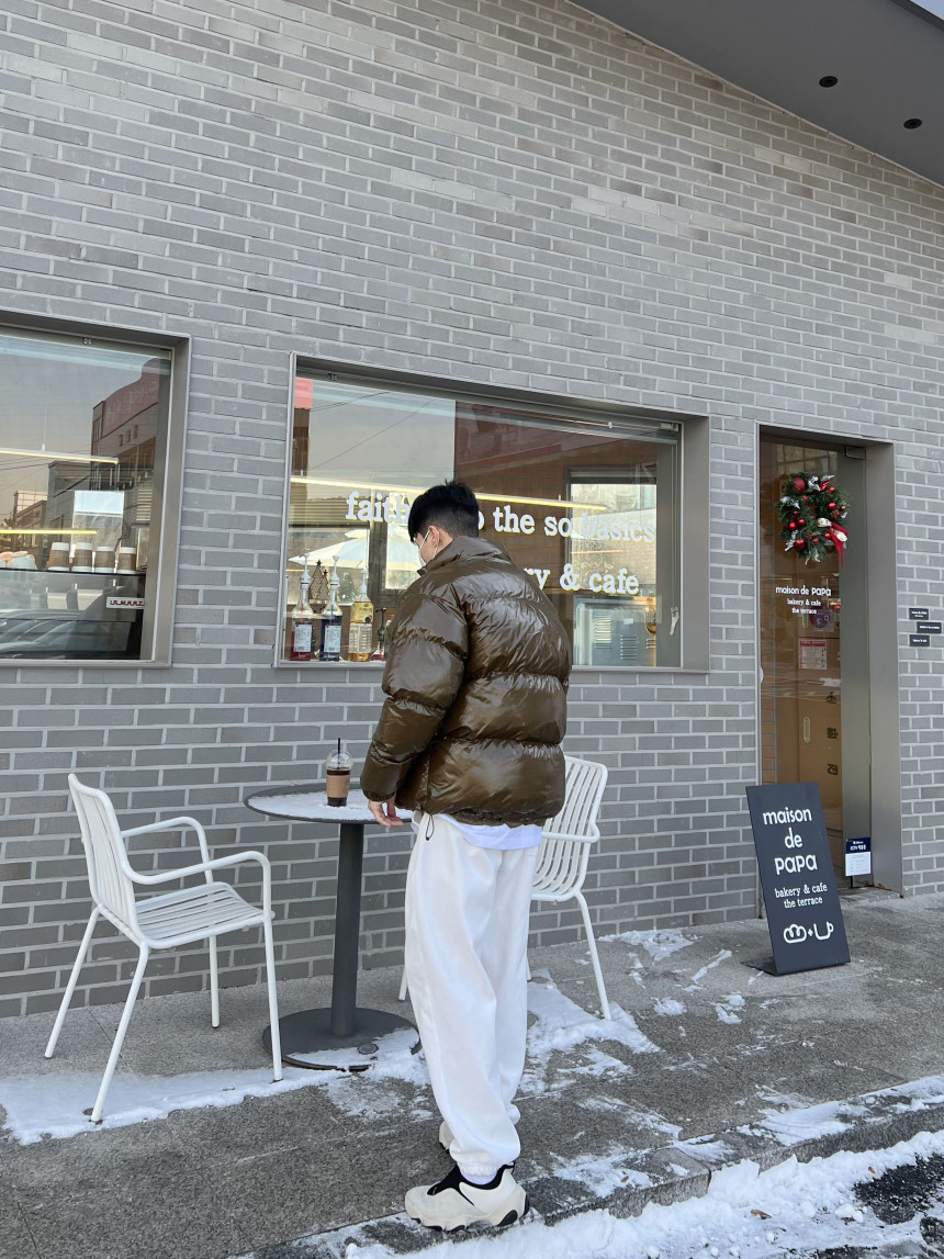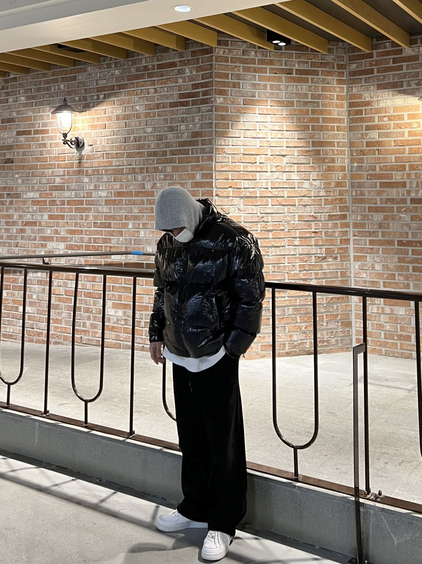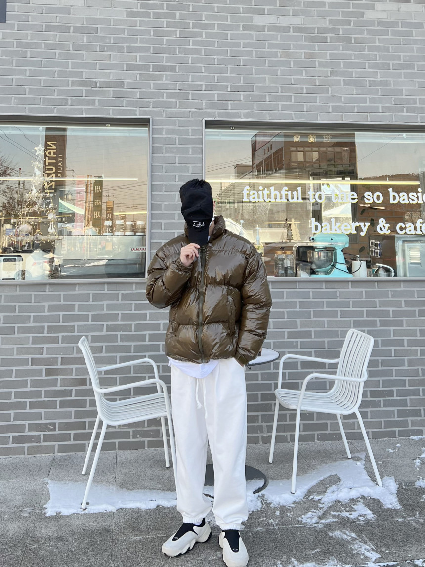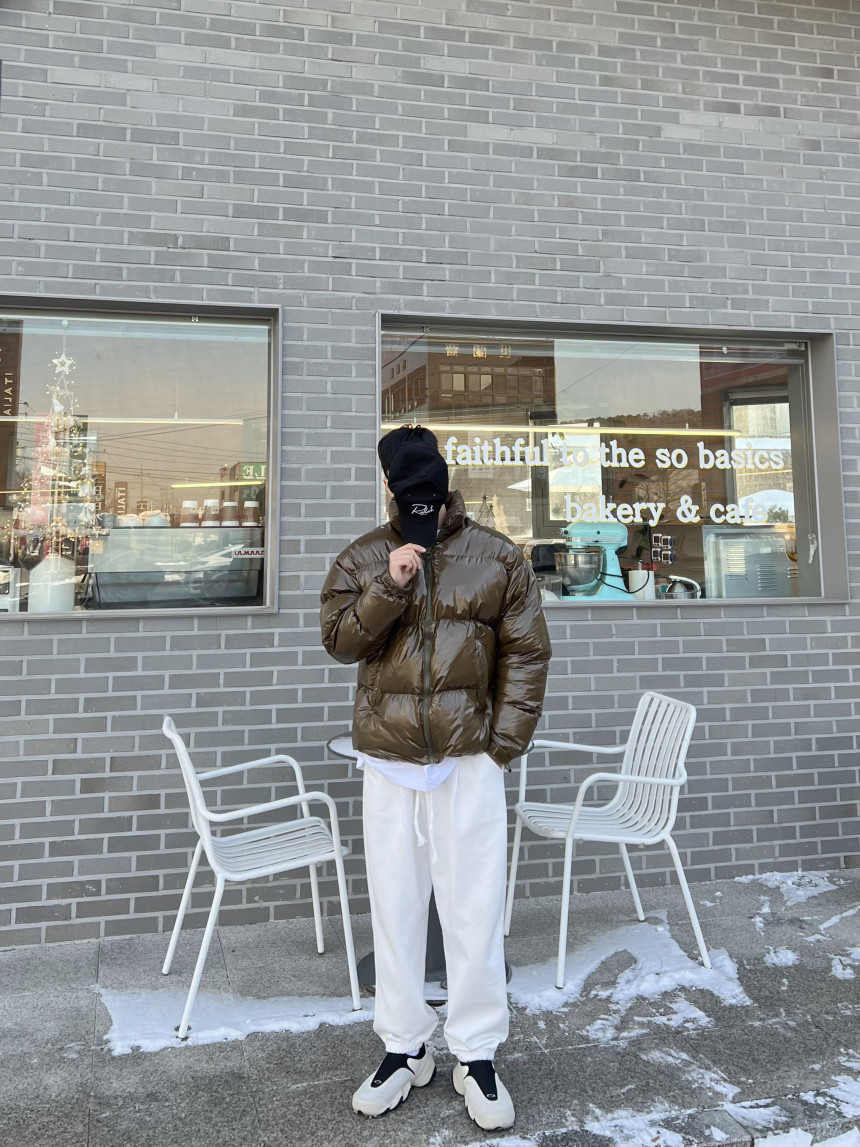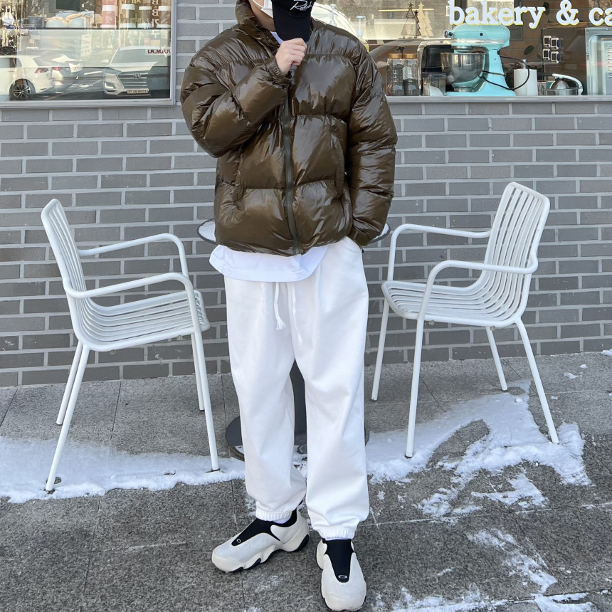 glossy padded vest 제품의 패딩 점퍼 버전이며