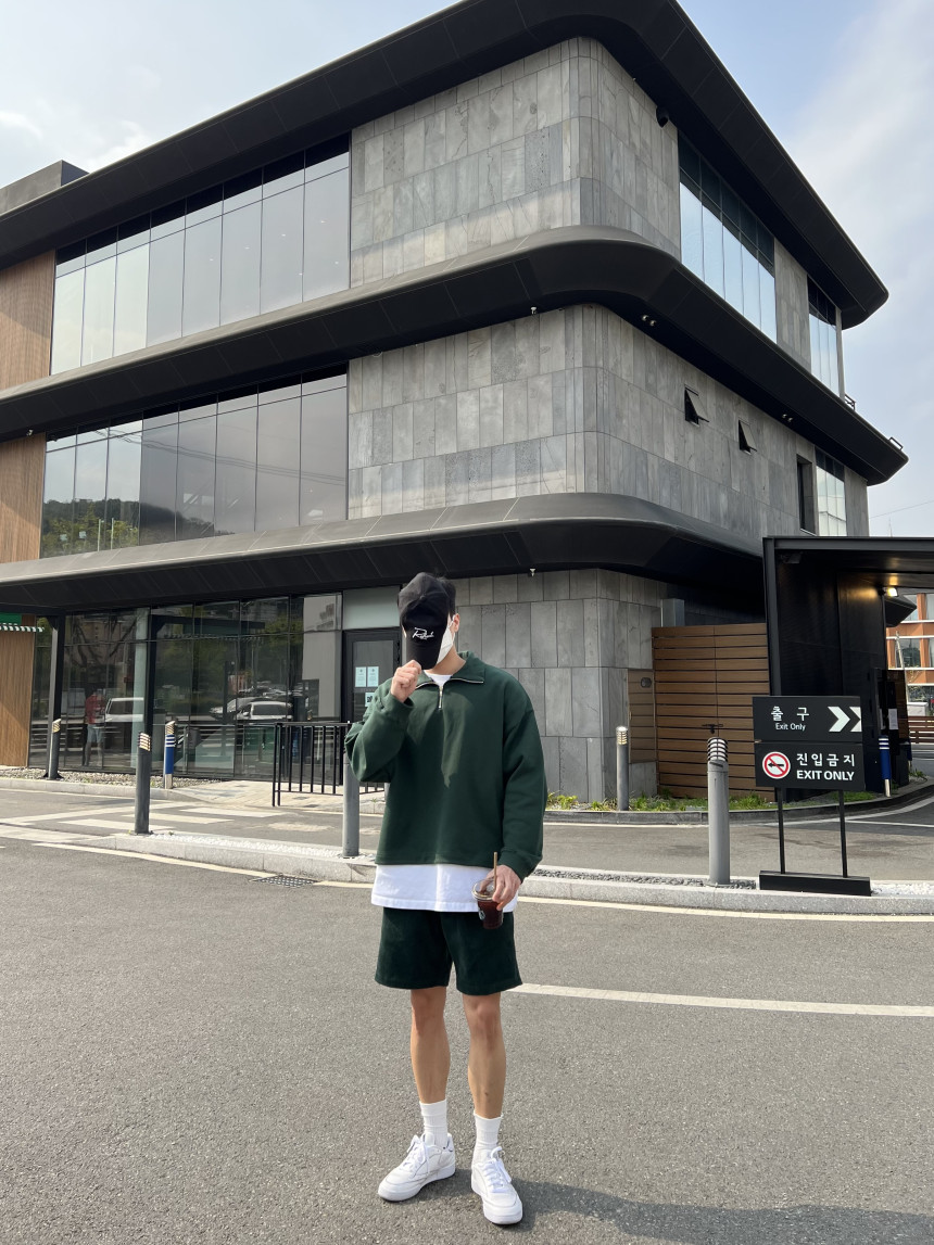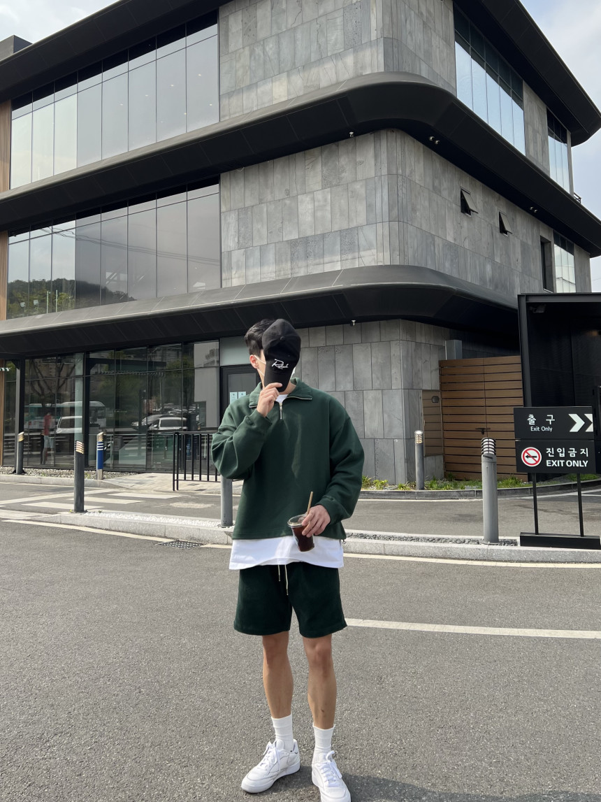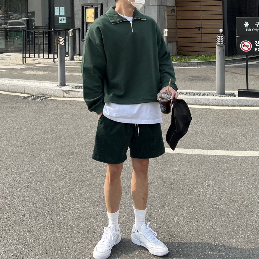 pants - corduroy banding half pants (deep green) m
