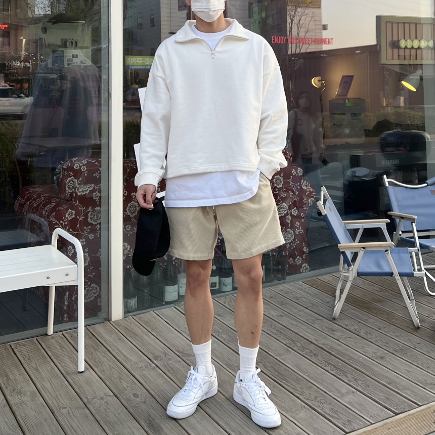 pants - corduroy banding half pants (beige) m