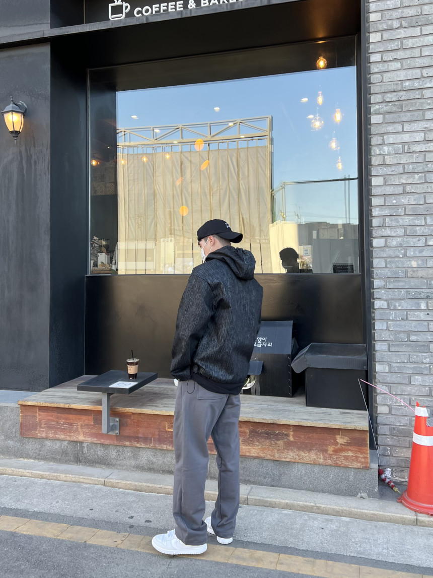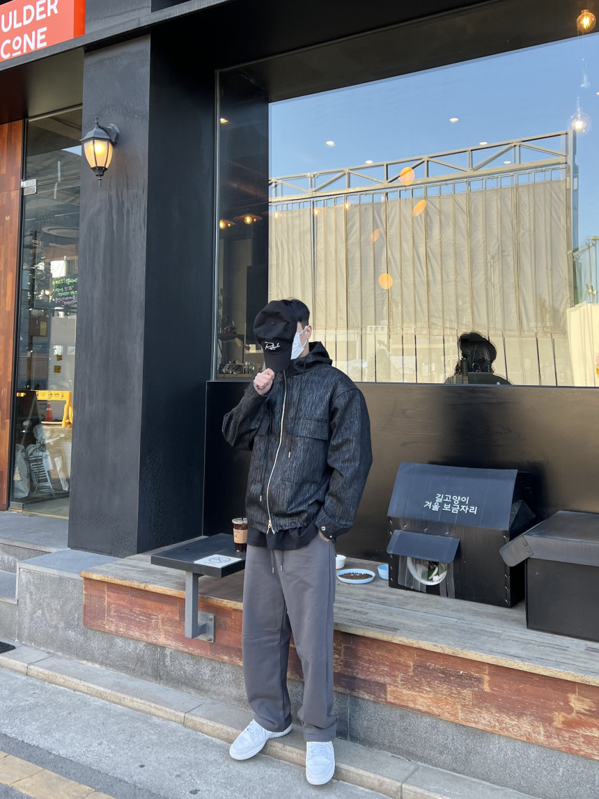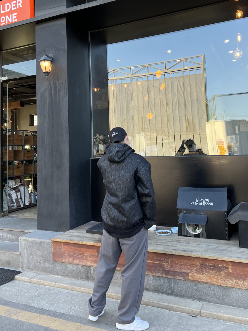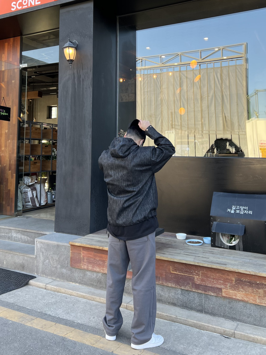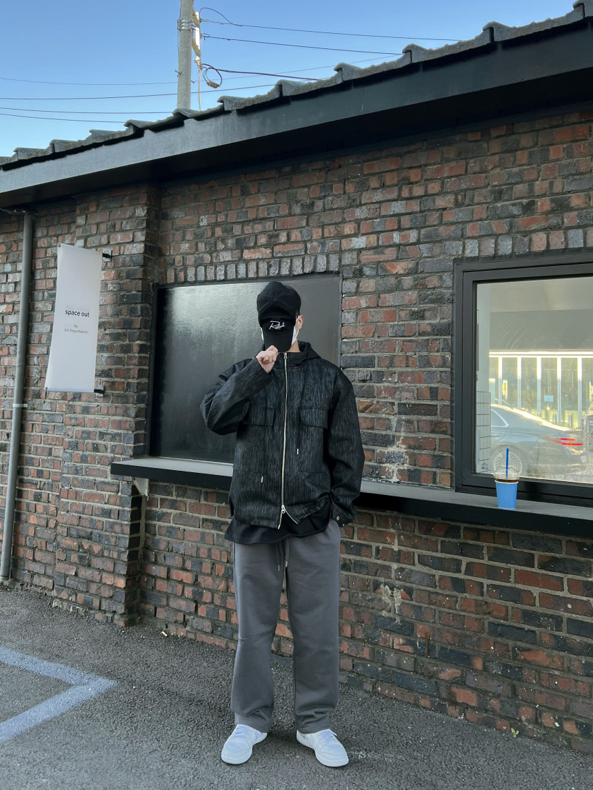 팔 부분 버튼 디테일, 투웨이 지퍼 형식이며