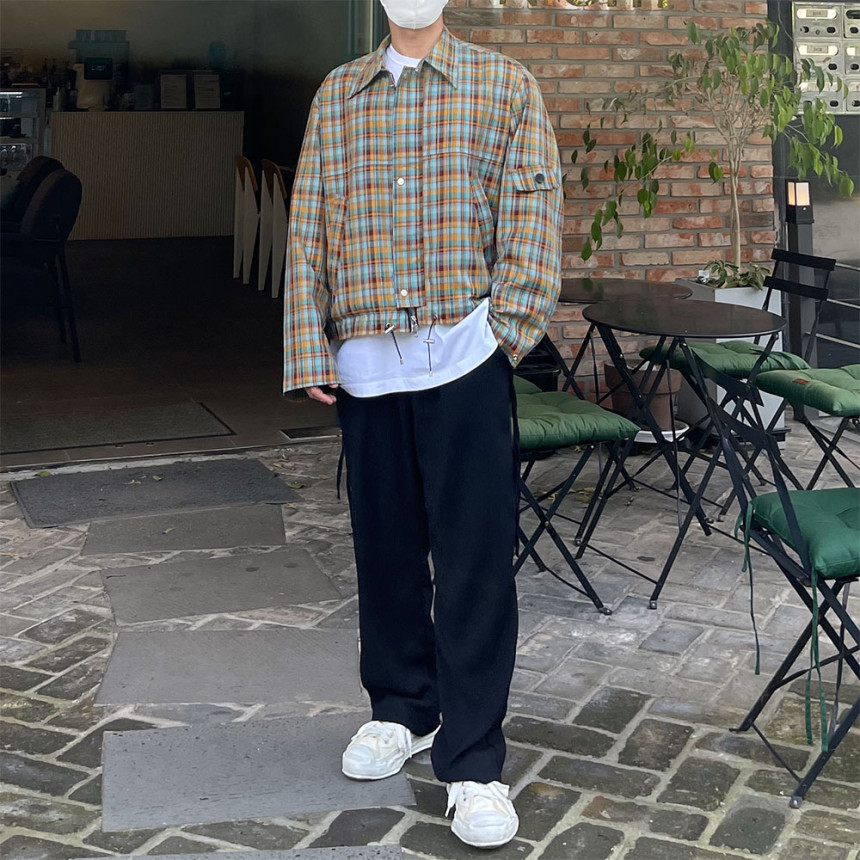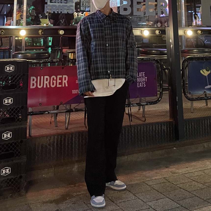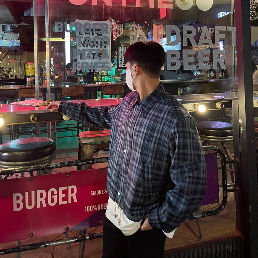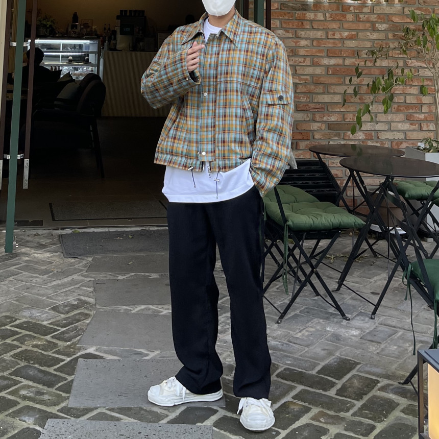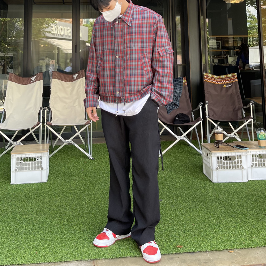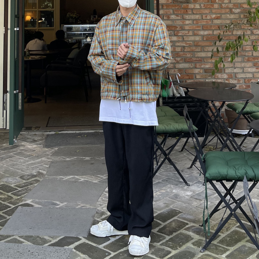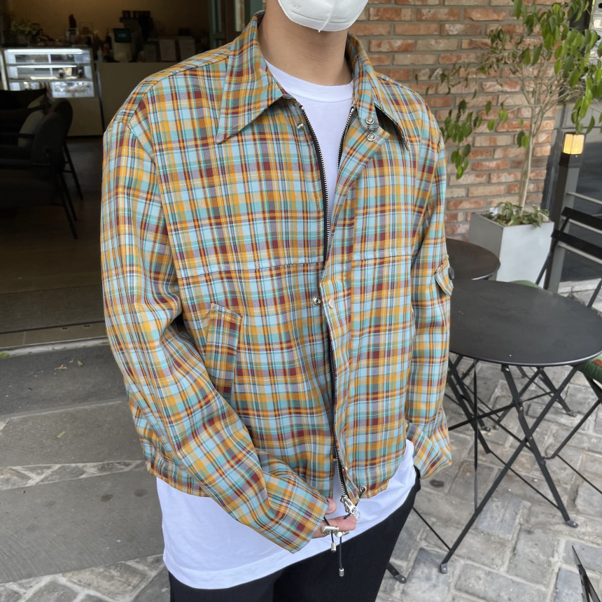 포인트 디테일이 많이 들어간 체크 자켓 입니다.