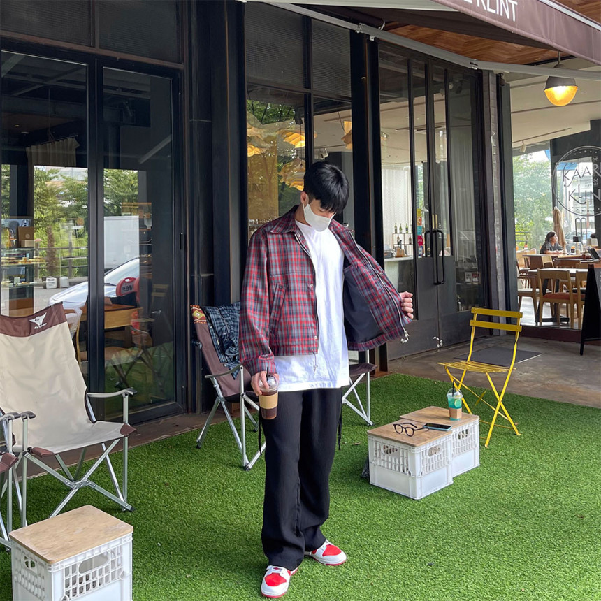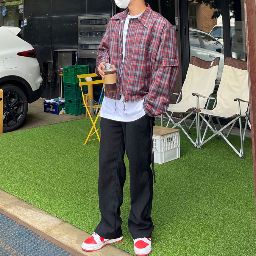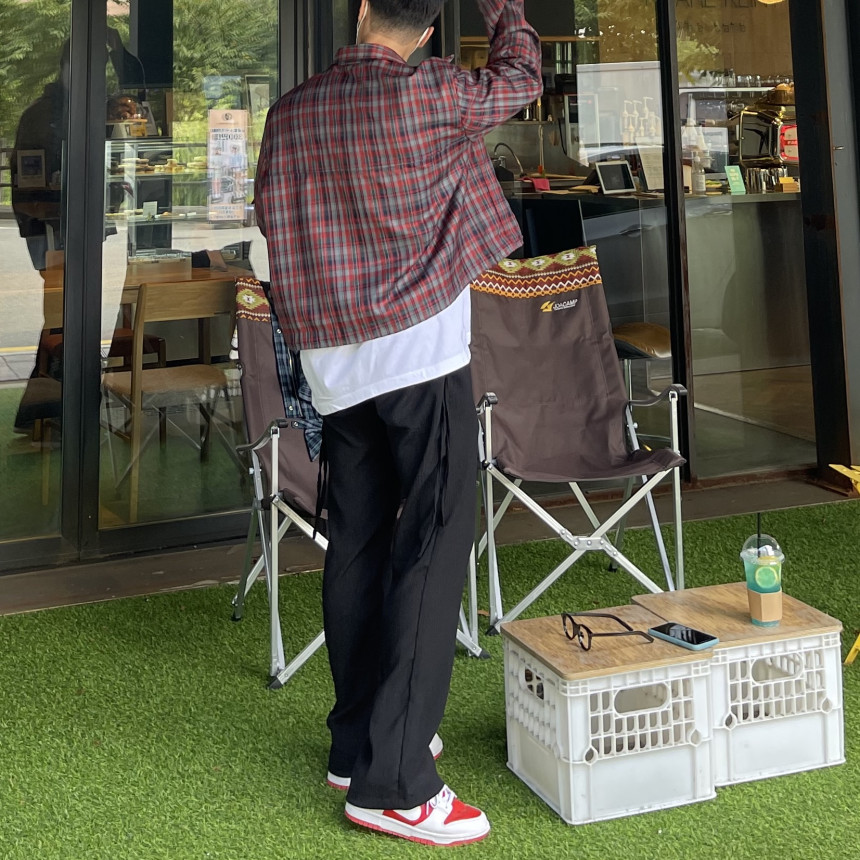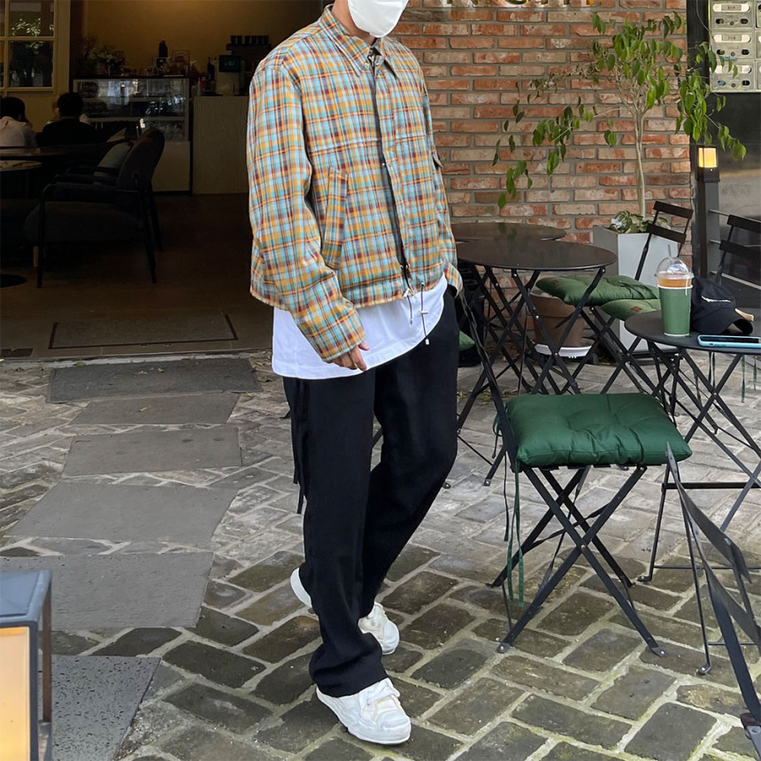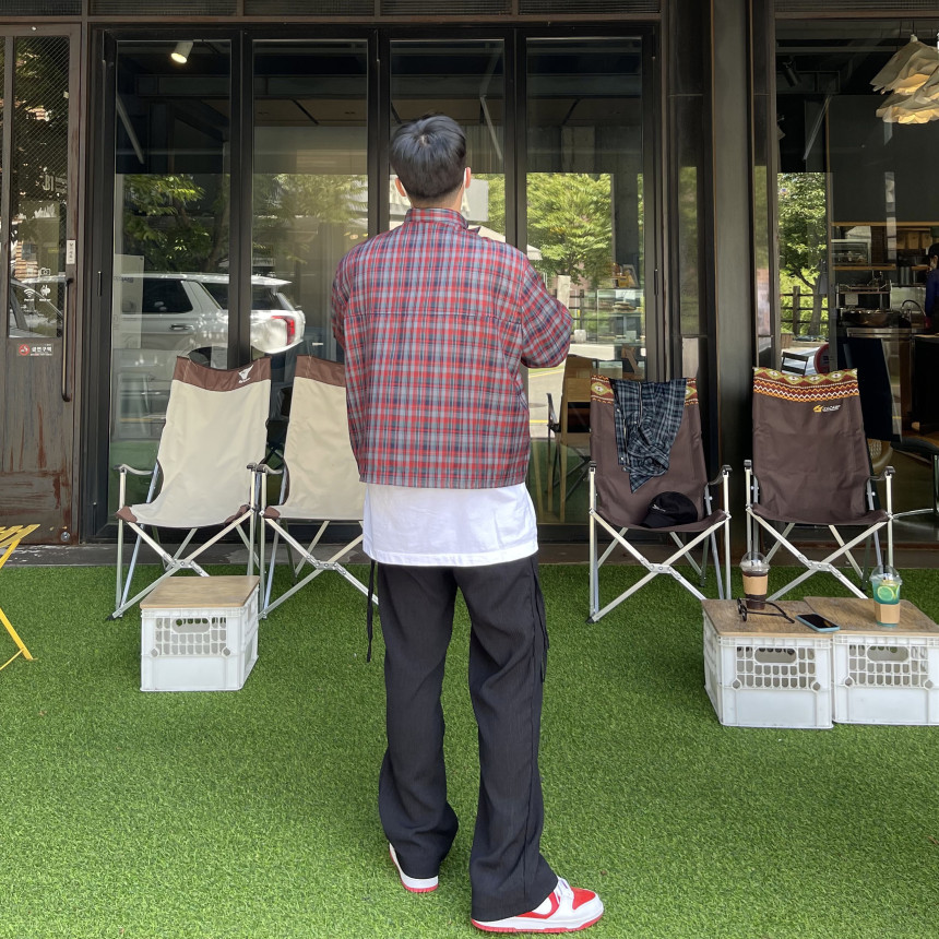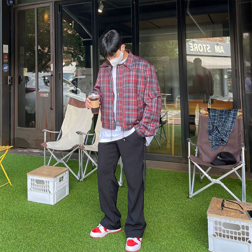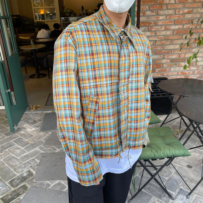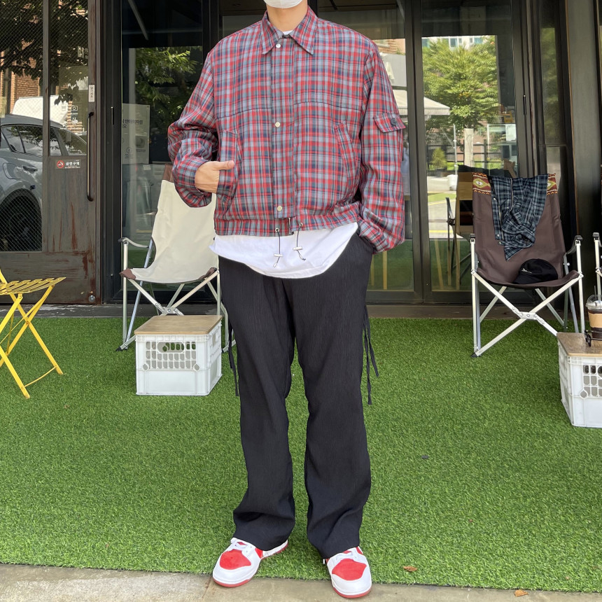 포인트 디테일이 많이 들어간 체크 자켓 입니다.