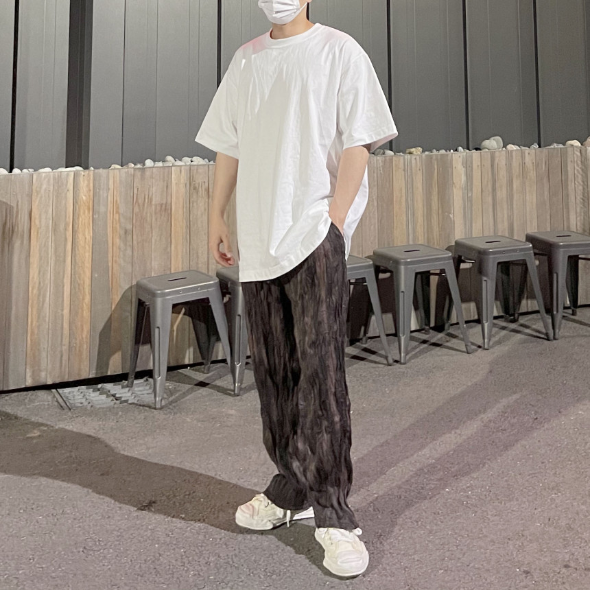 제작된 웨이브 플리츠 팬츠입니다.
